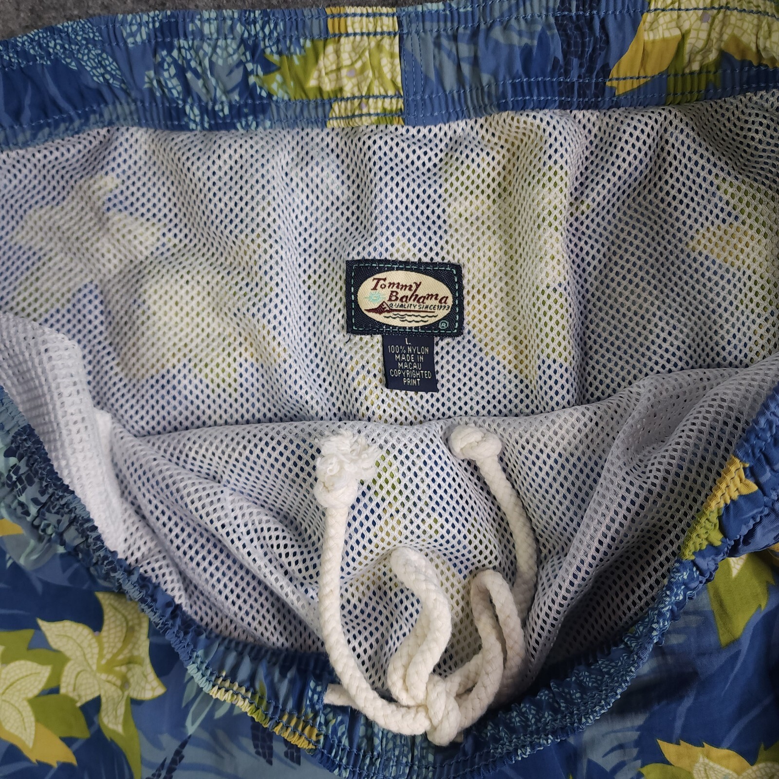 Tommy Bahama Shorts Large Hawaiian Floral Blue Lined Beach Drawstring Swimming