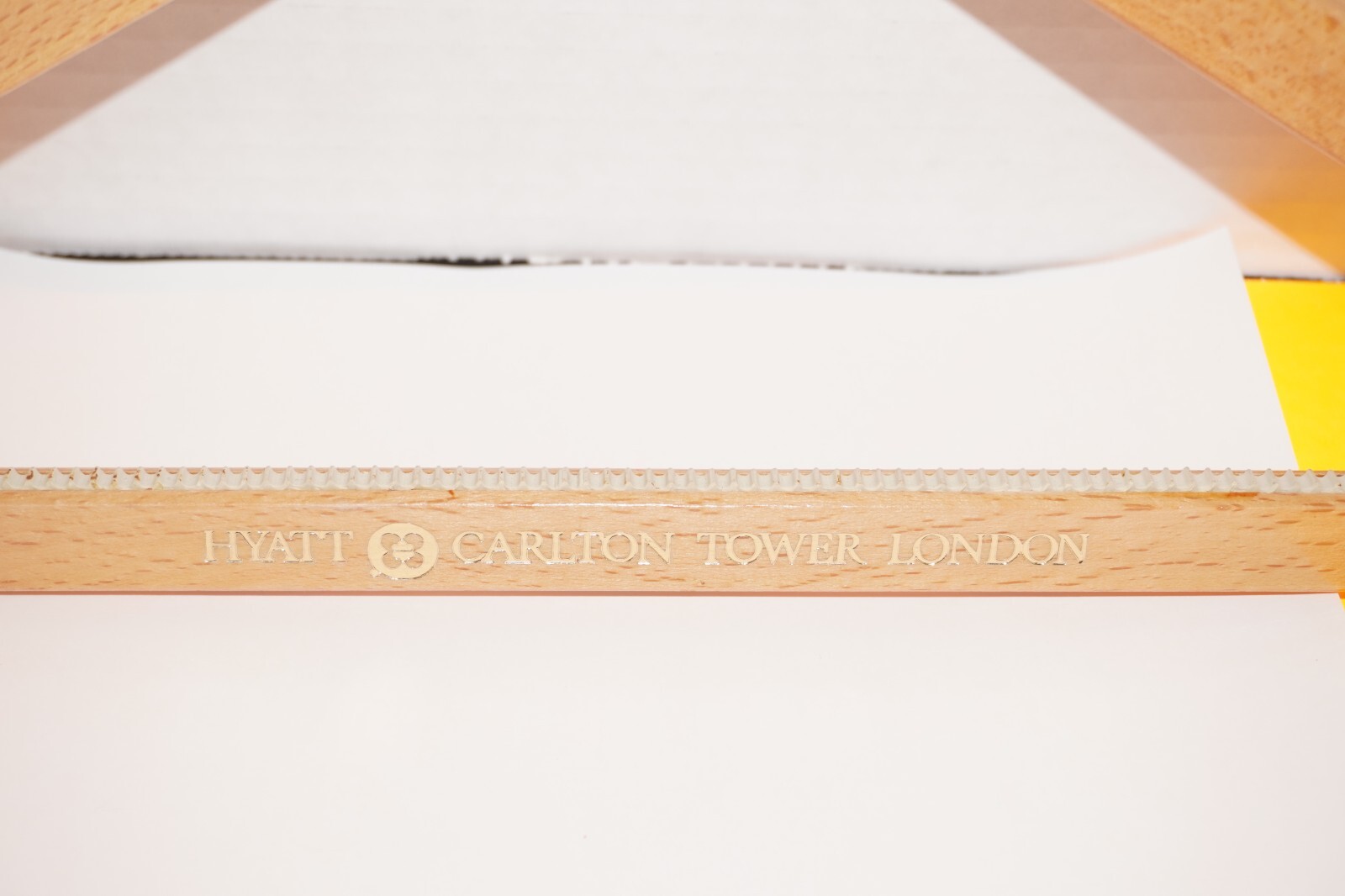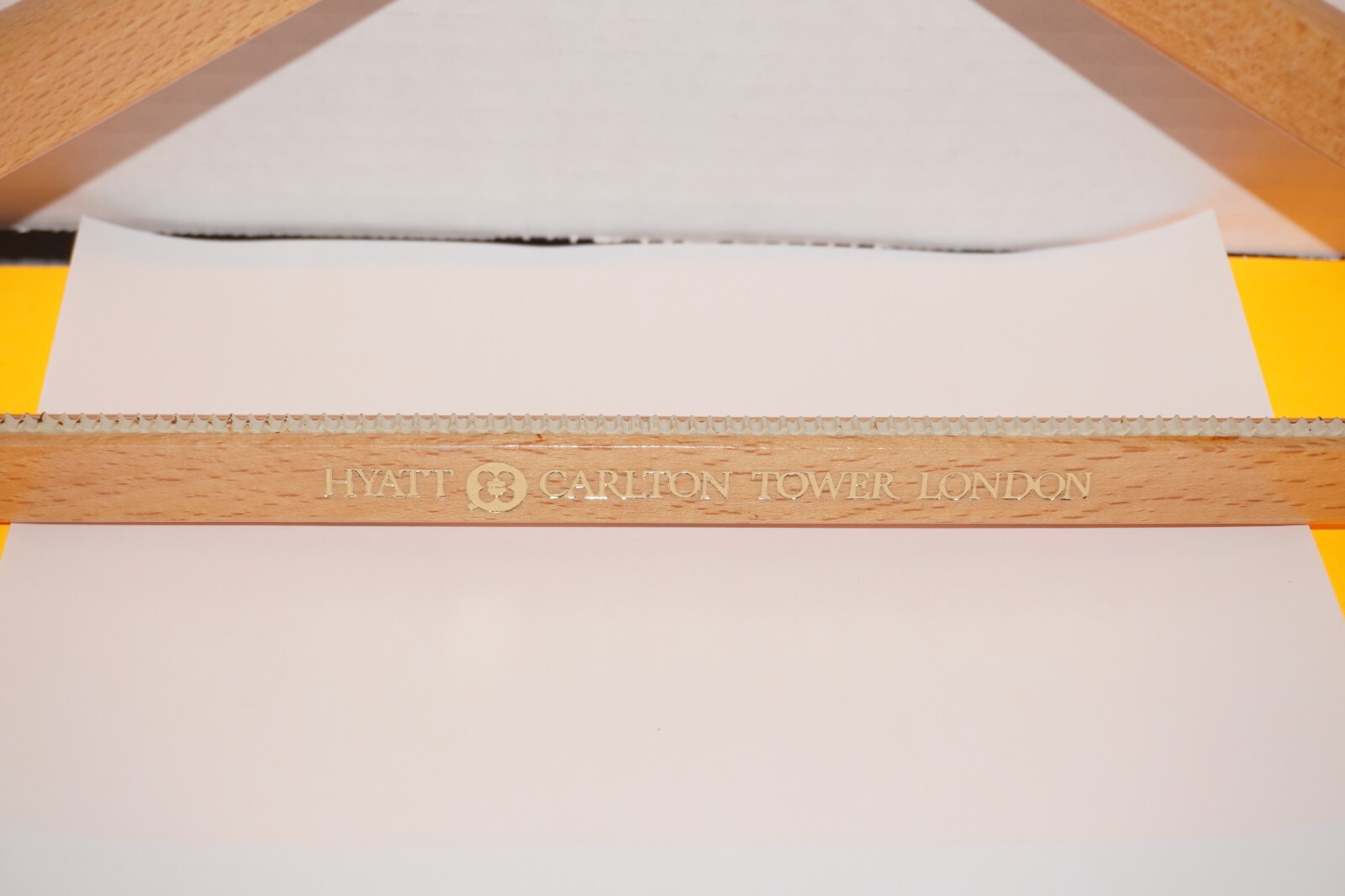 как выглядит VINTAGE 70s Hyatt Carlton Tower London England LONG NECK WOODEN COAT HANGER фото