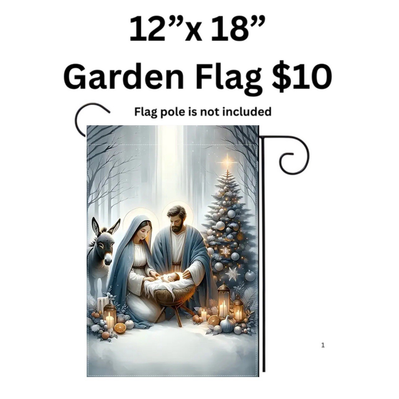 Garden flag, 12 x 18 , Christmas nativity scene, burlap polyester double-sided