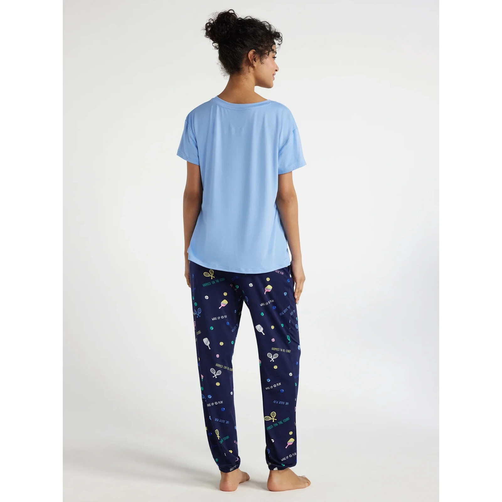 JOYSPUN PAJAMAS PJ SET 'RACQUET CLUB' TOP LONG JOG PANTS BLUE, NAVY BLUE 2X