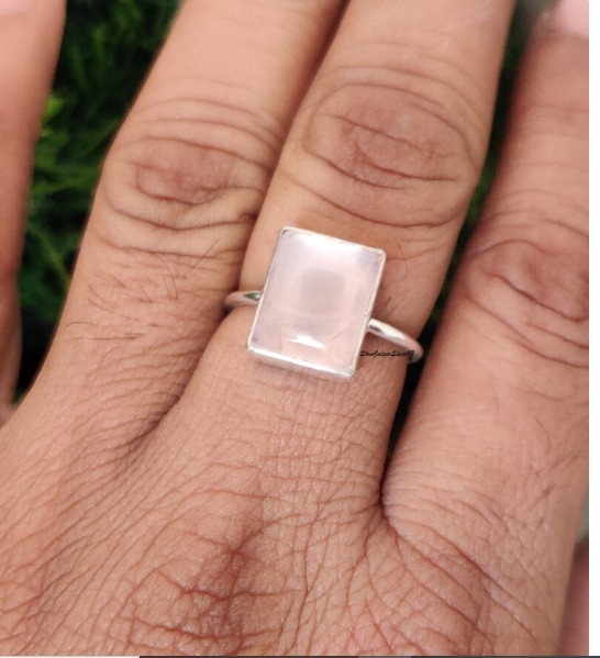 как выглядит Genuine Rose Quartz Ring, 925 Sterling Silver Ring, Dainty Quartz Ring, All Size фото