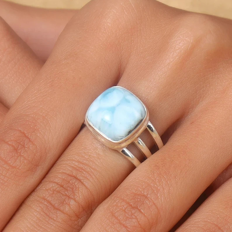 Larimar Ring 925 Sterling Silver Band Statement Ring Handmade Ring All Size