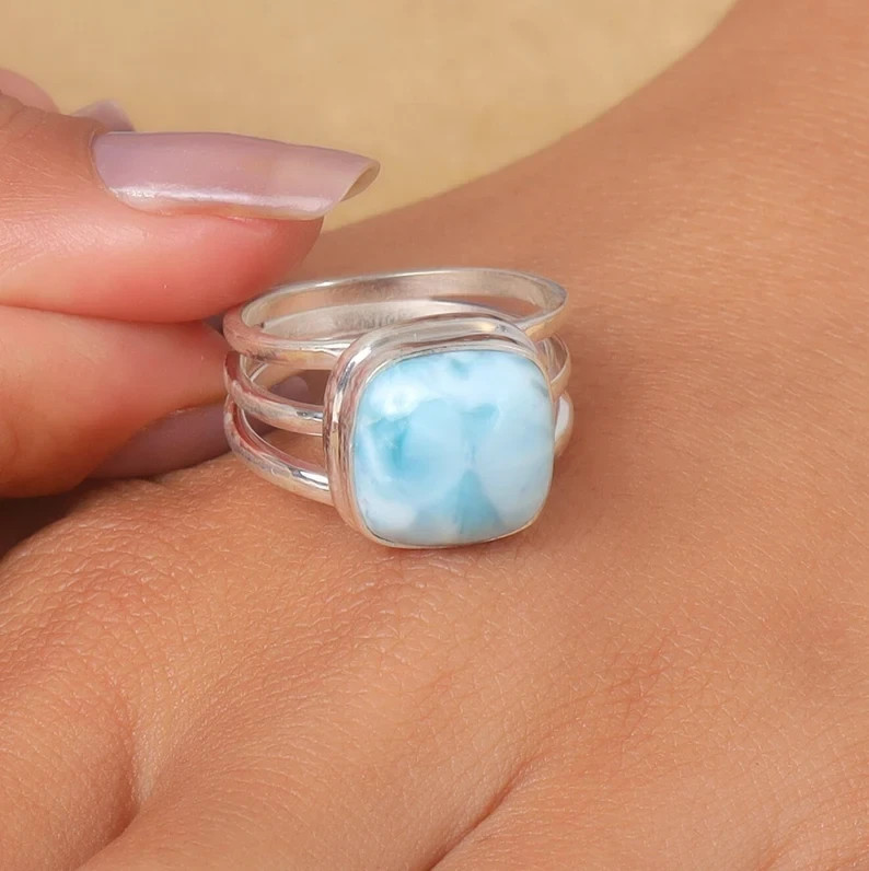 как выглядит Larimar Ring 925 Sterling Silver Band Statement Ring Handmade Ring All Size фото