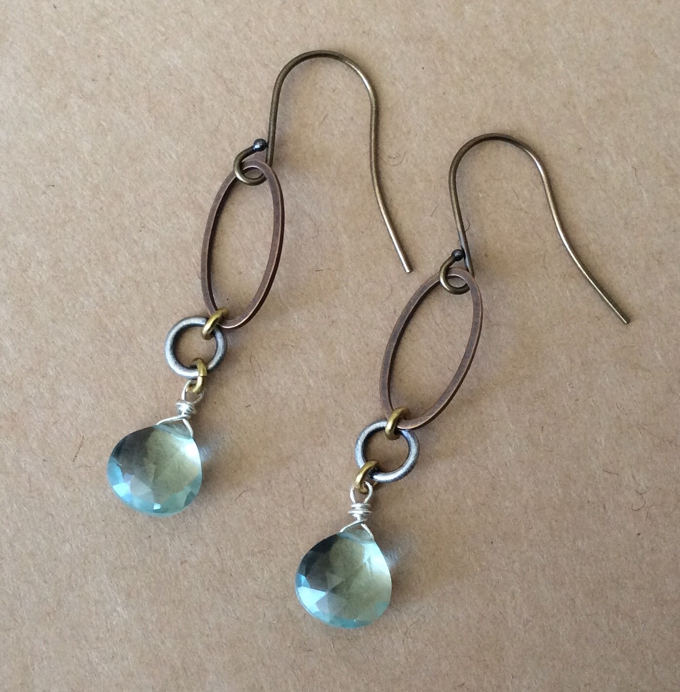 HANDMADE JEWELRY ANTIQUE TONE GOLD PLATED AQUAMARINE SUNDANCE CHARM EARRINGS