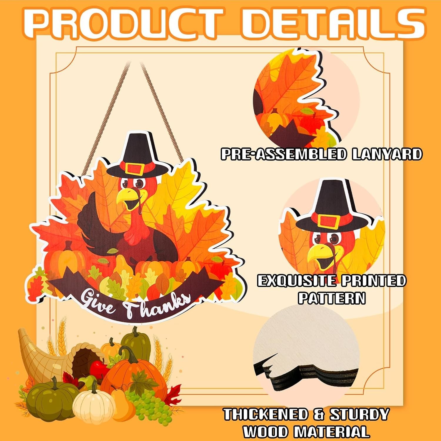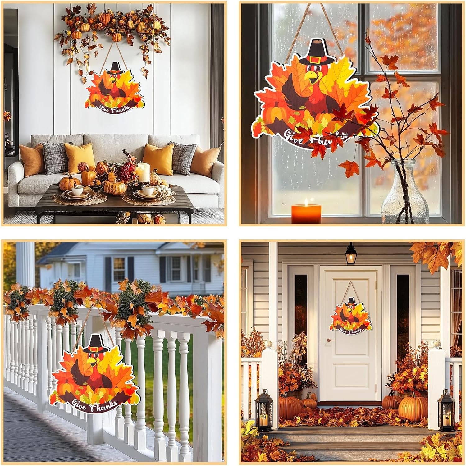 Thanksgiving Decorations for Front Door, Wooden Welcome Sign Fall Turkey