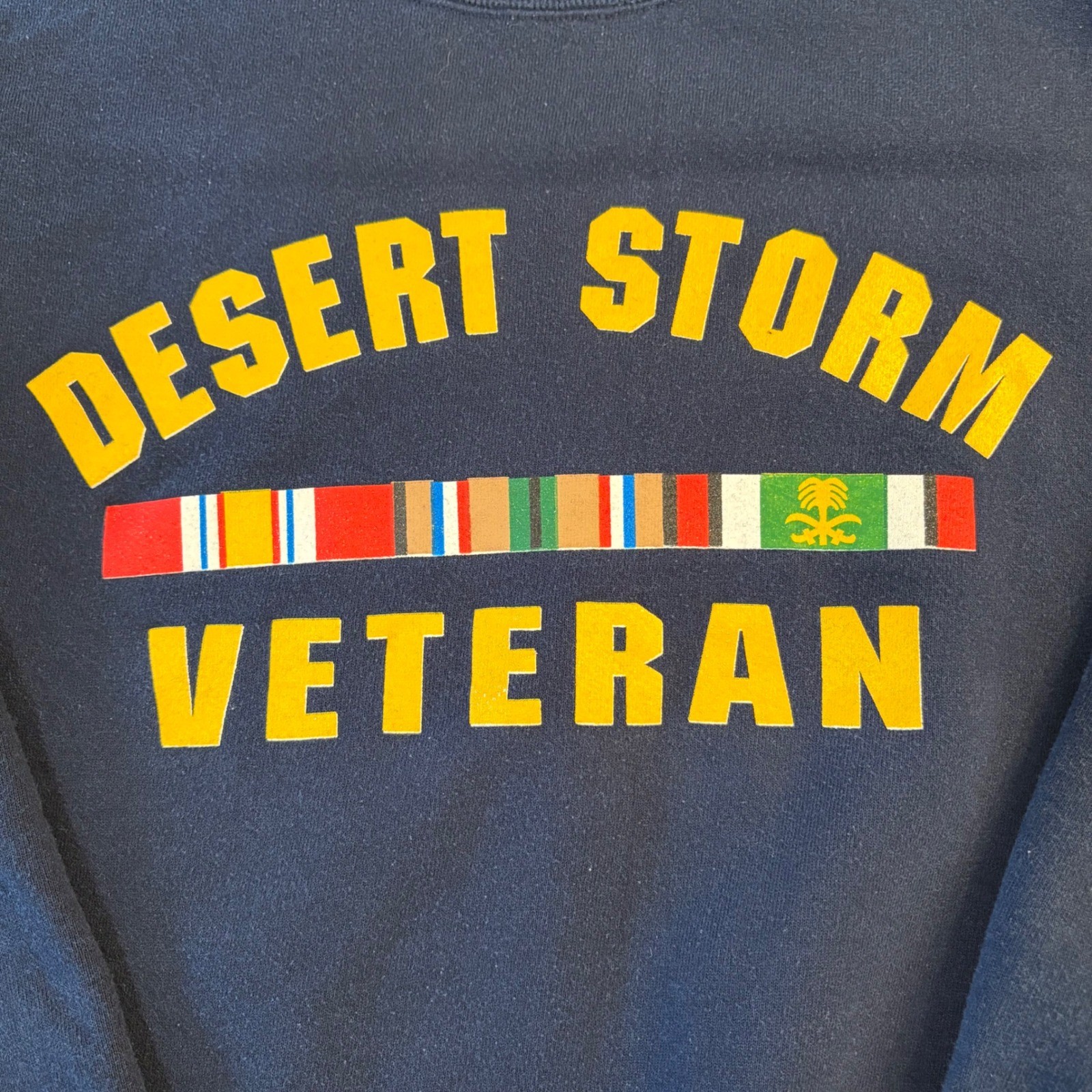Vintage Desert Storm Veteran Sweatshirt USA Made Navy Blue Military Pullover XL