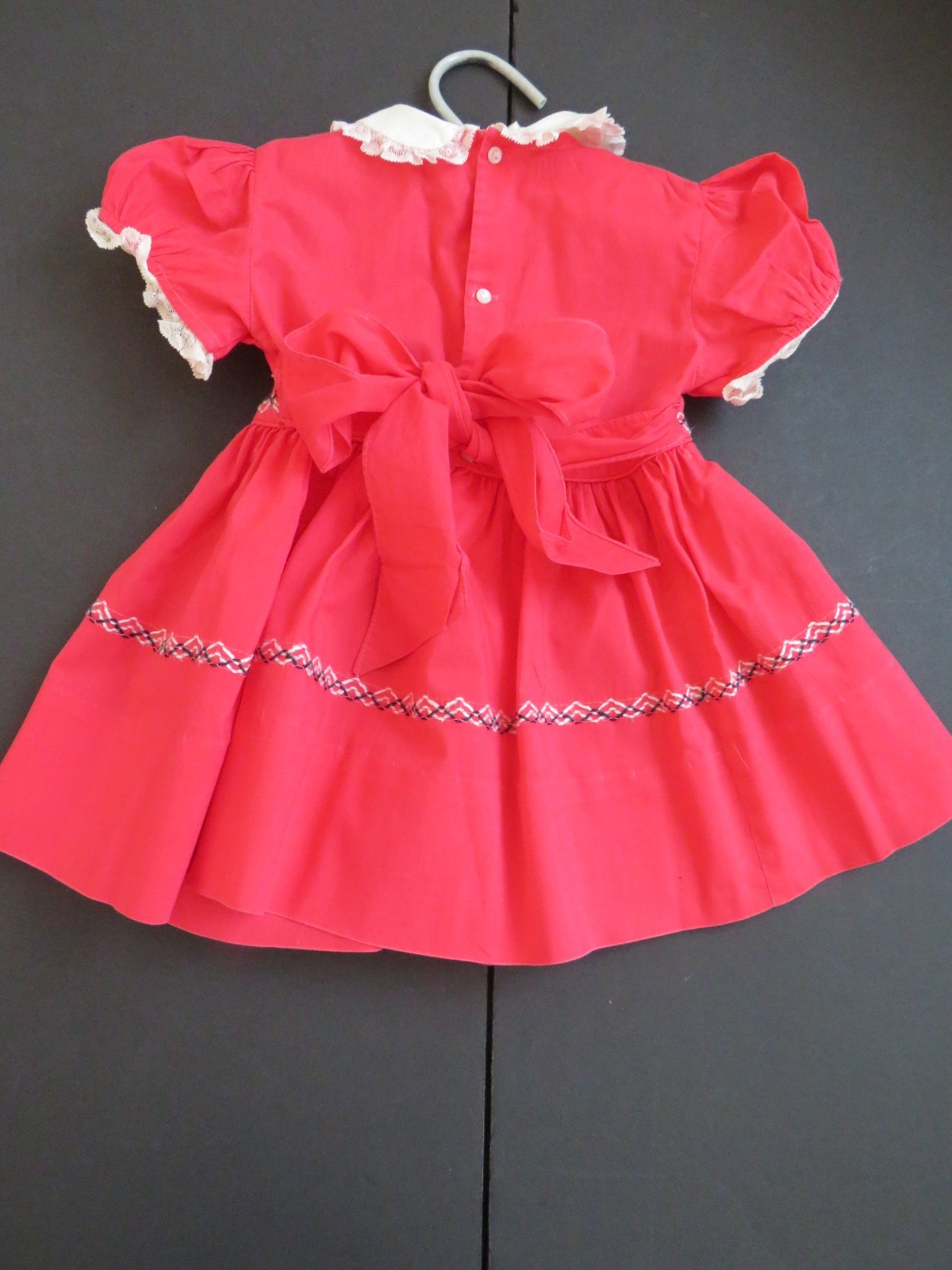 Vintage NANNETTE Toddler Girls Dress - Size 2 - Embroidered Red Dress Lace Trim