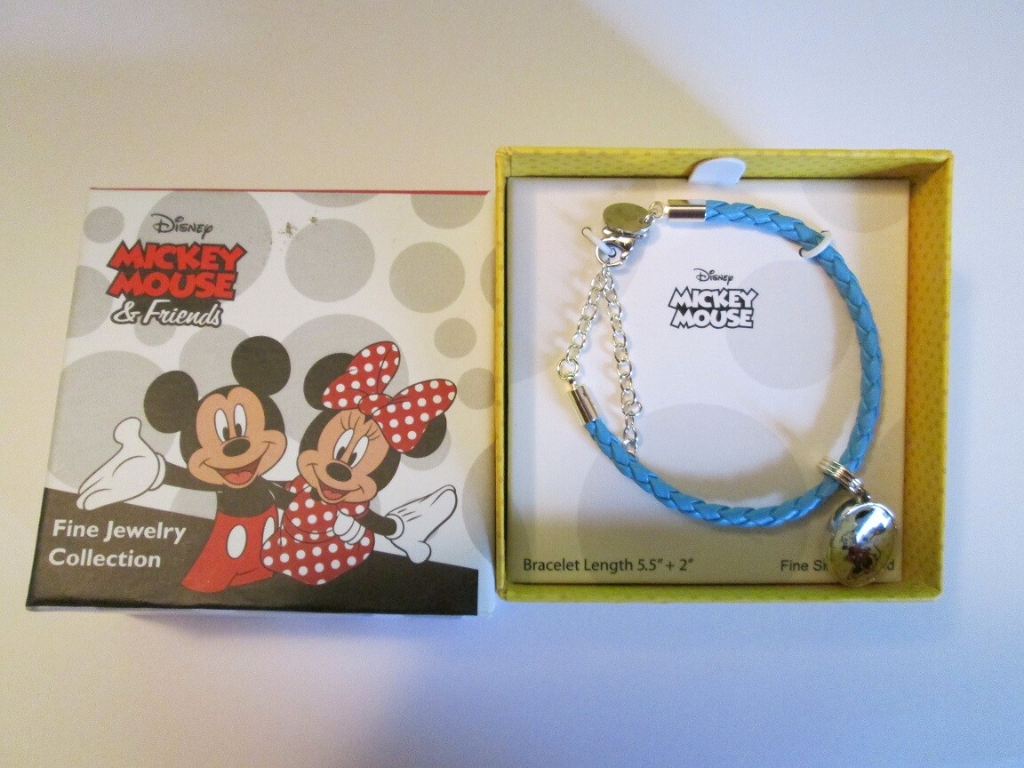 • DISNEY MINNIE MOUSE GIRL'S BLUE LEATHER BRACELET WITH CHARM BY JACMEL, NEW, MIB