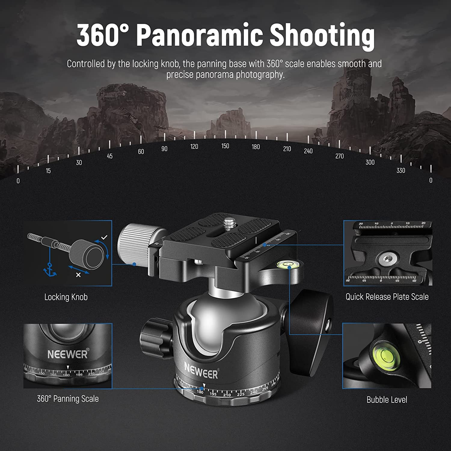 Low Profile Camera Tripod Ball Head, 36Mm Metal Panorama Ball Head Compatible wi