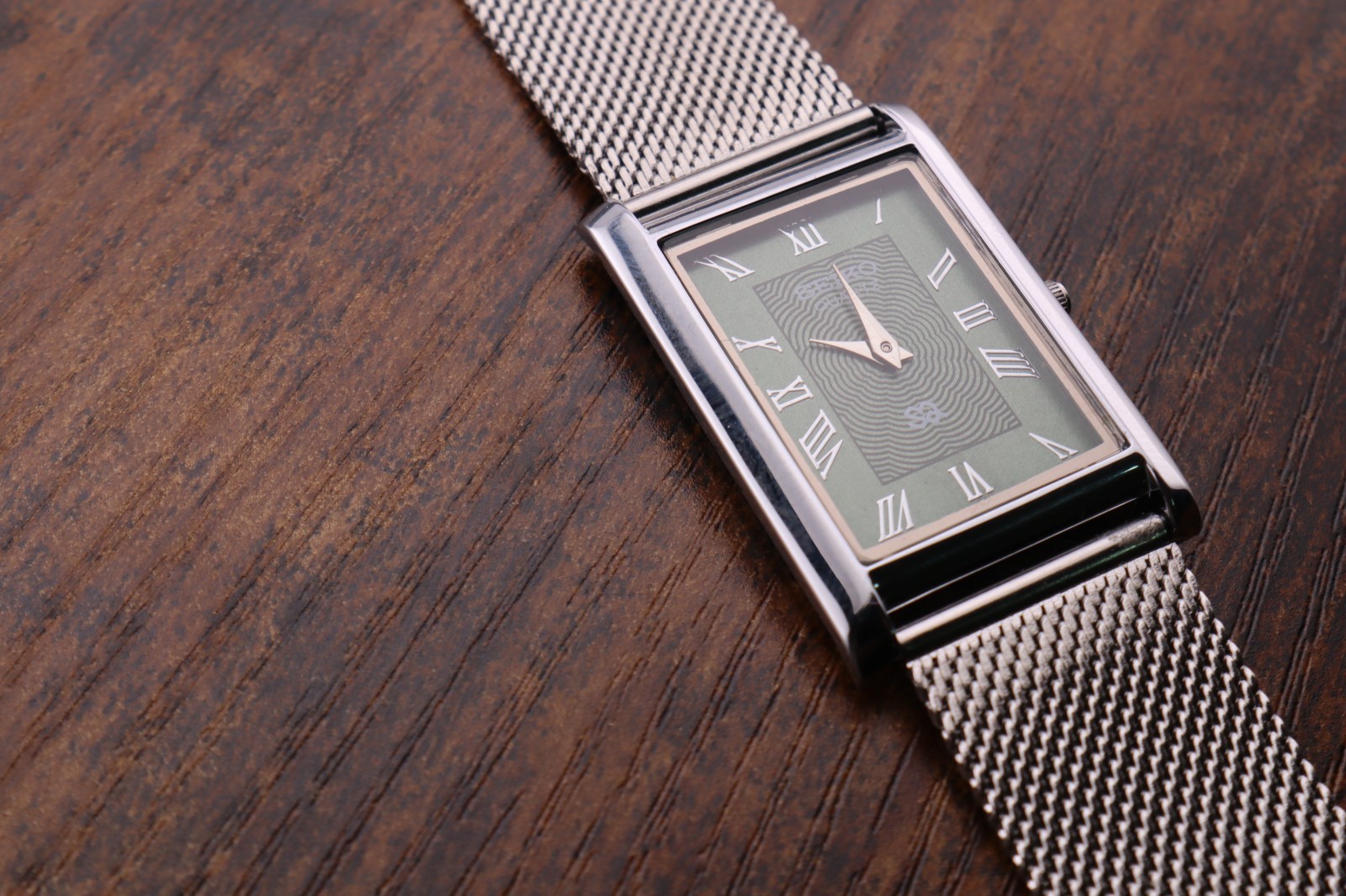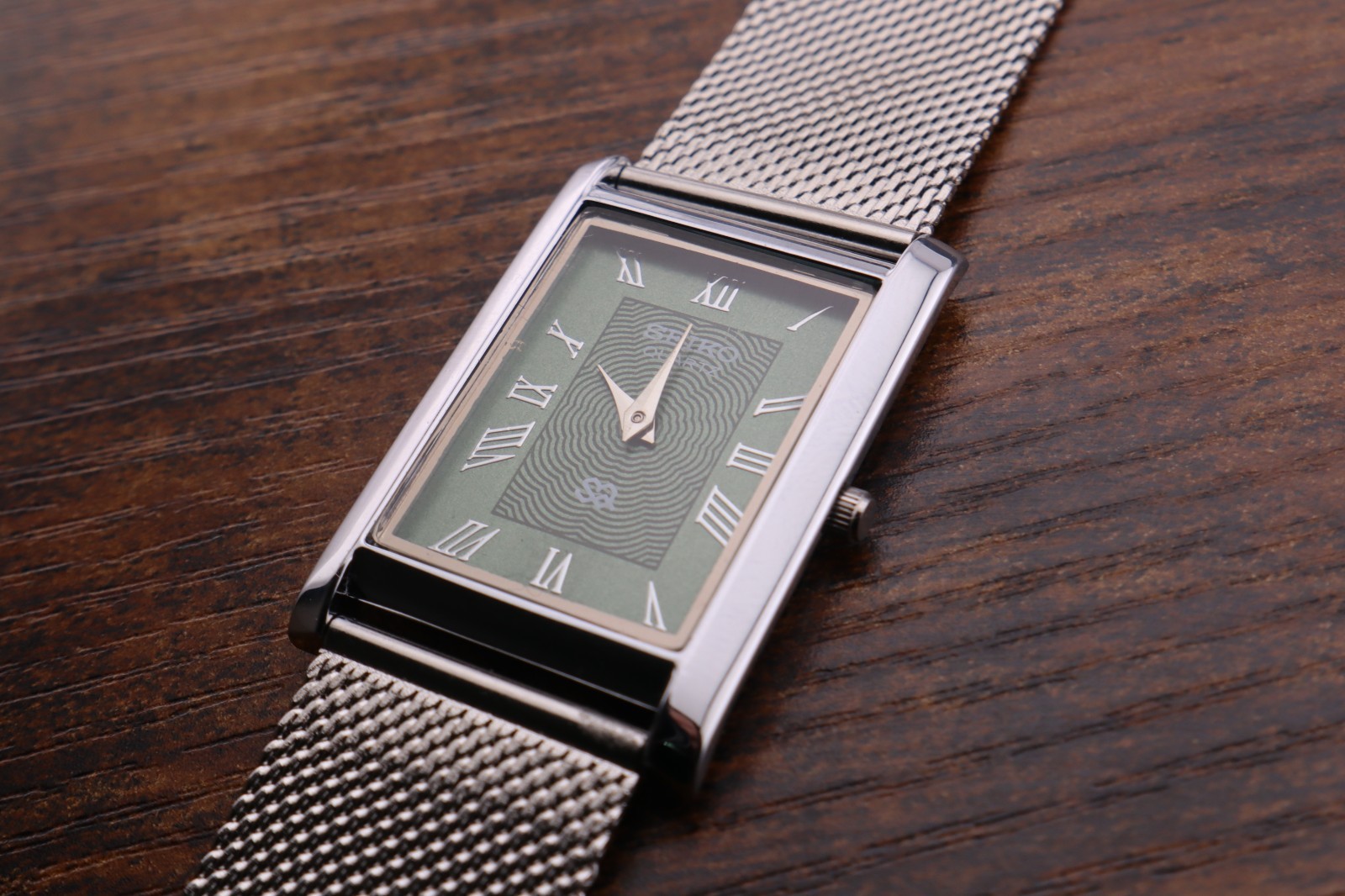 Seiko Slim Quartz Men Green Dial Silver Bracelet Vintage Watch