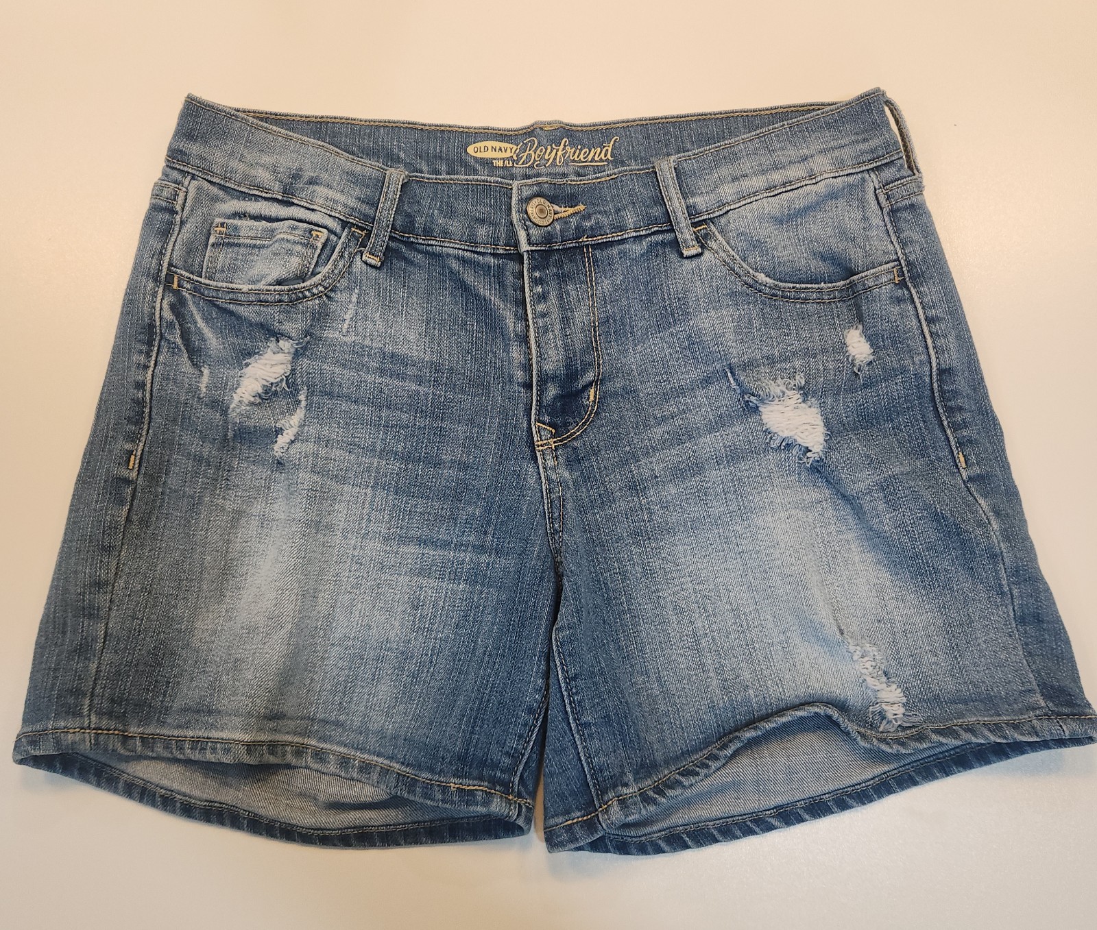 Old Navy Boyfriend Denim Shorts Mom Shorts Blue Distressed Mid-Rise Womens 8