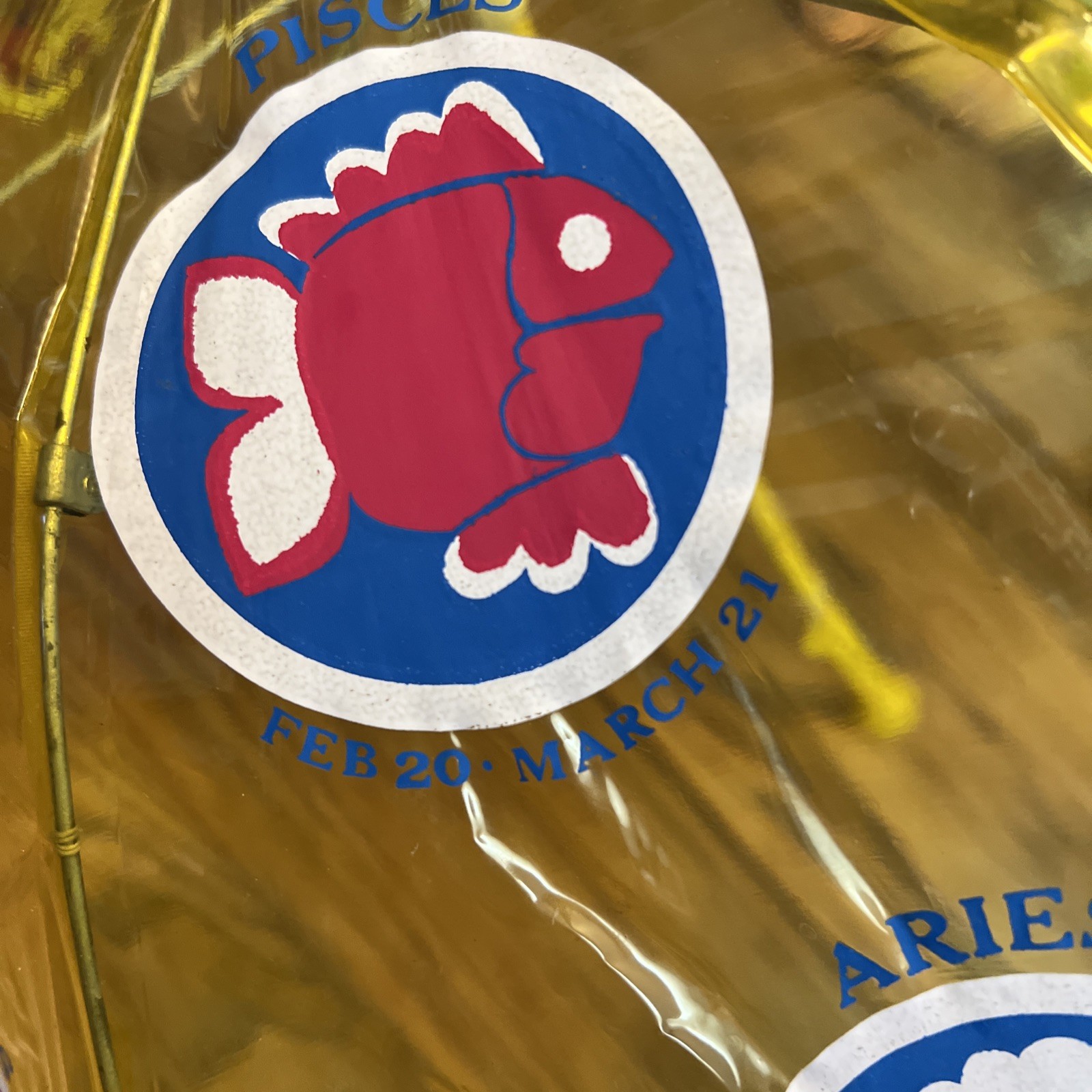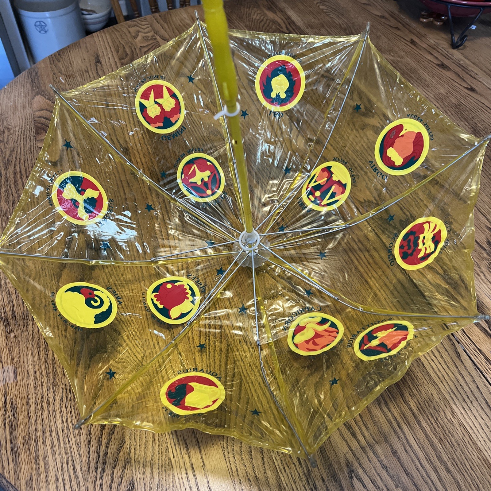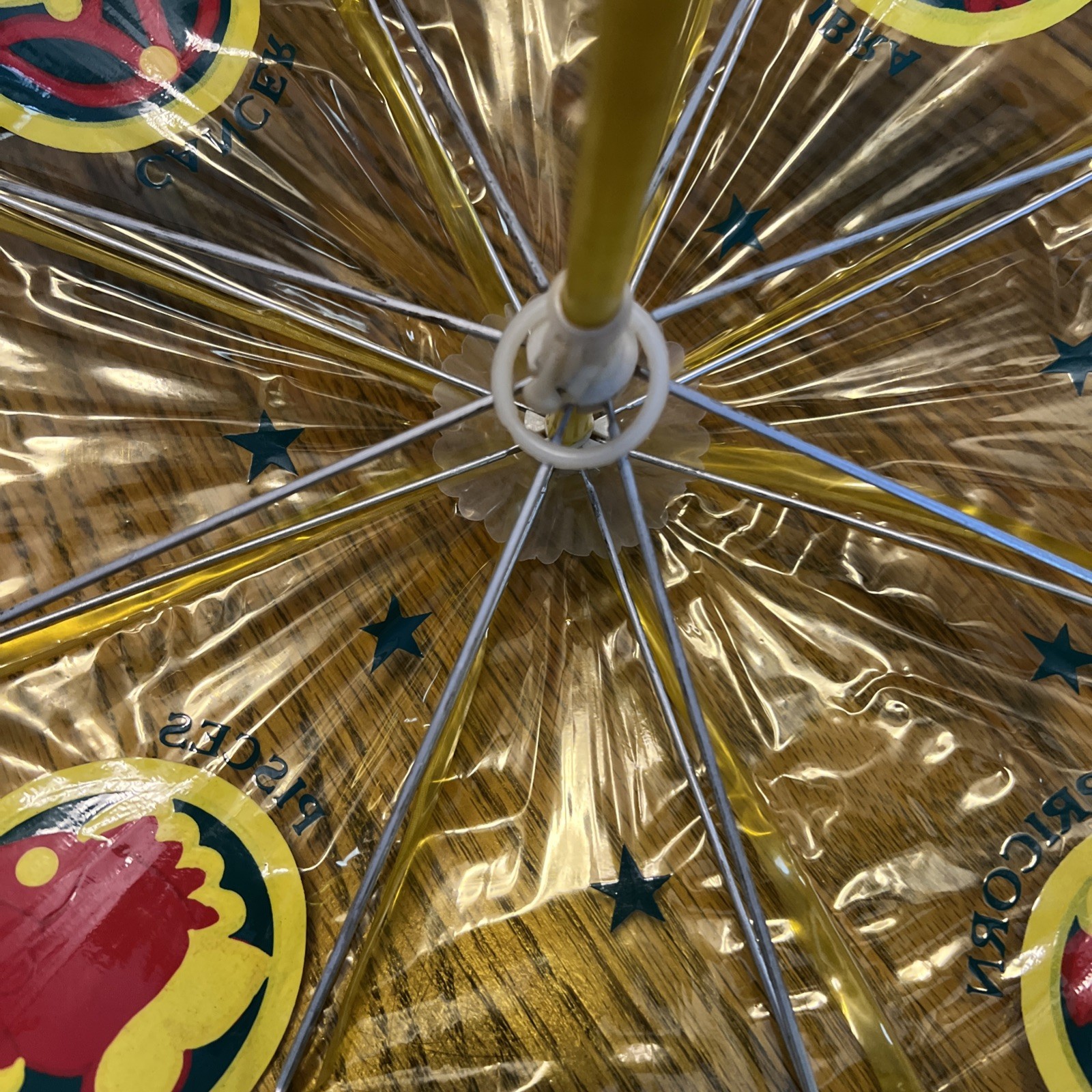 как выглядит Vintage Child s Umbrella Yellow Tinted Clear Plastic with Astrological Signs фото