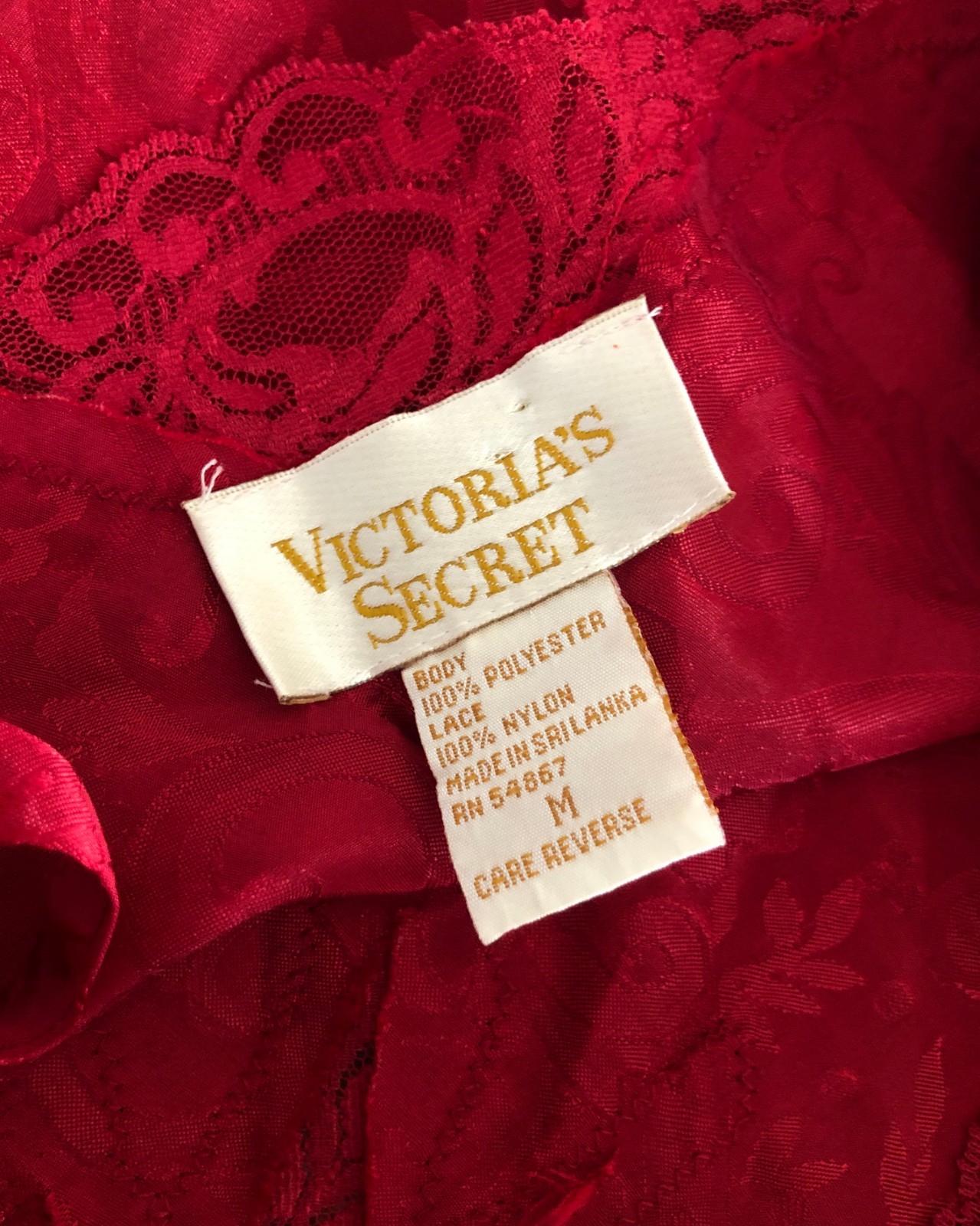 как выглядит Vintage Victorias Secret Red Babydoll Slip Dress Lace Gold Label , Medium фото
