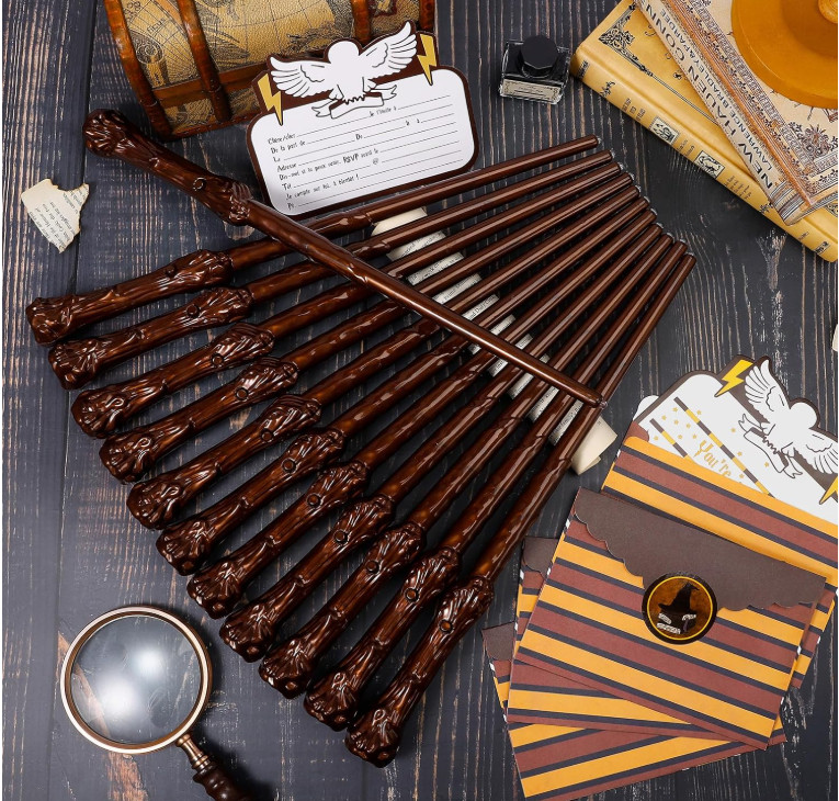 12PCS Illuminating Sound Witch Toy Wand Set with 12 Invitation Cards Envelopes