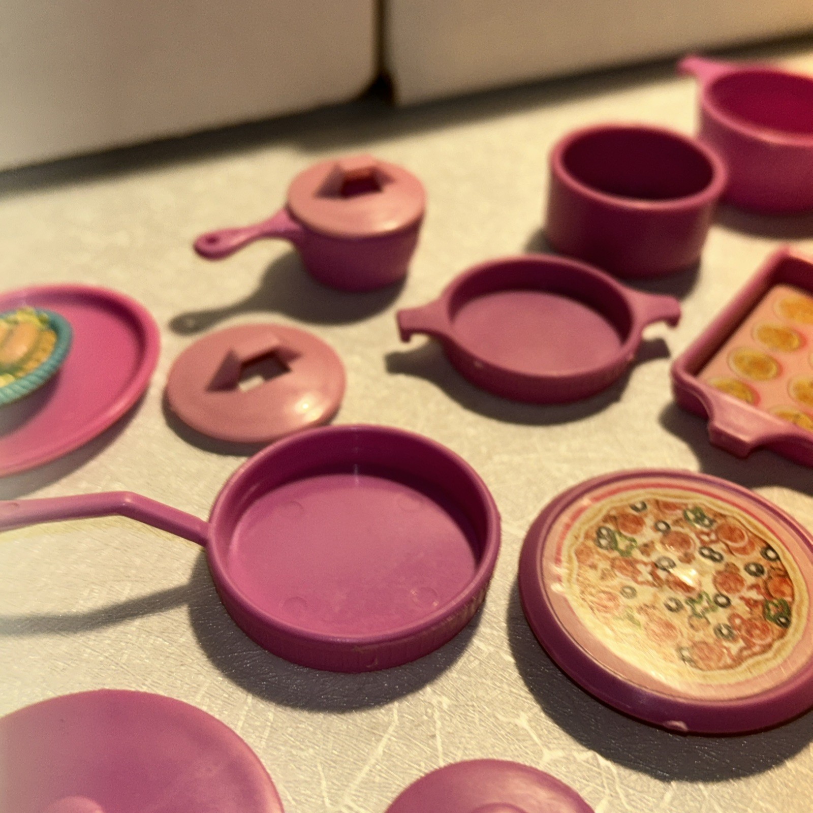 как выглядит Vintage Barbie Dream House Kitchen Pink Purple Mauve Pot Pans Food 23 Pcs. фото
