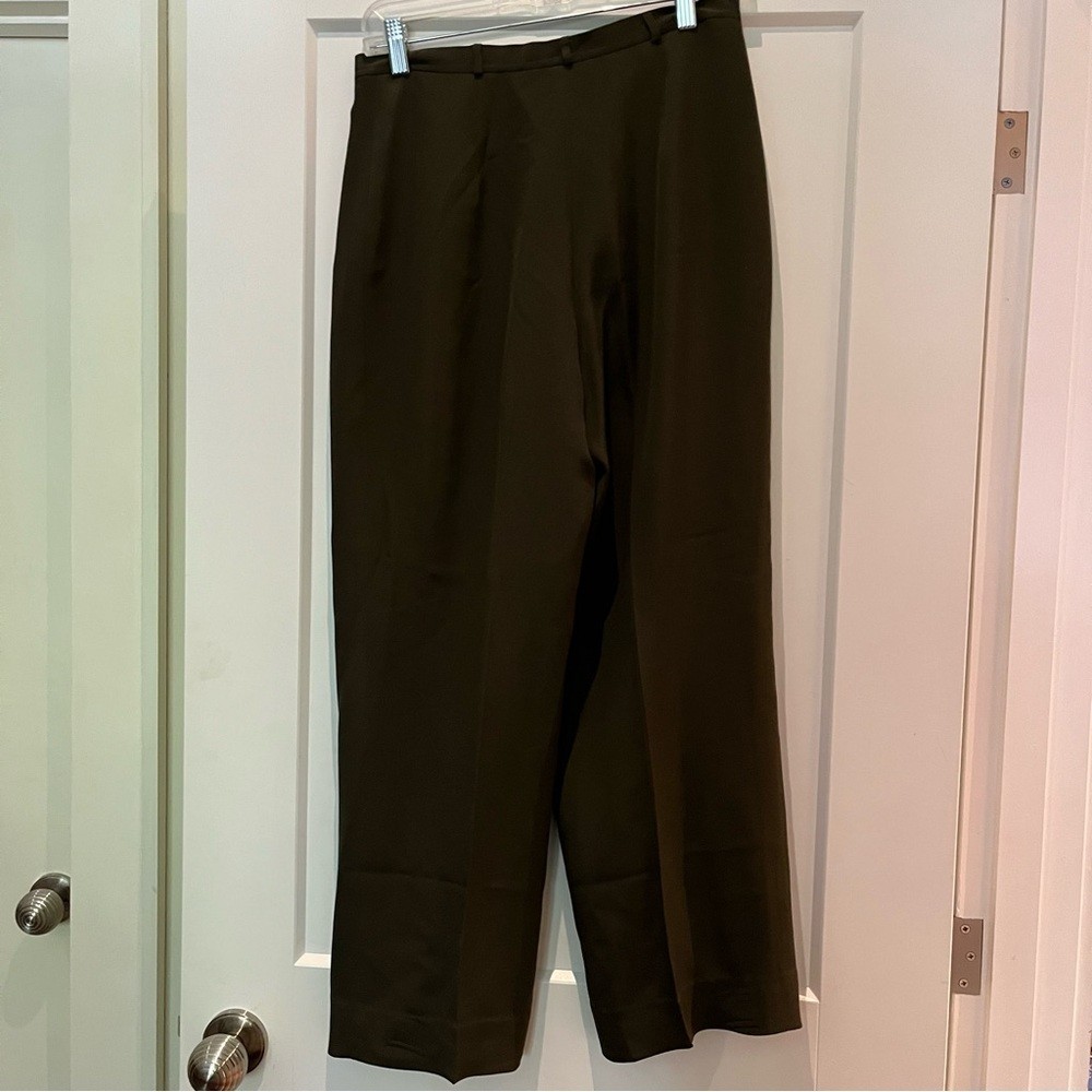 как выглядит Vintage  Silk Relaxed/Slouchy Fit Tailored Minimalist Khaki/Olive Trousers фото