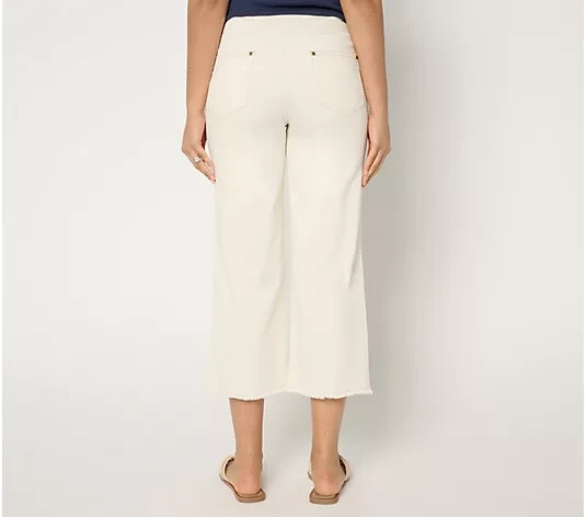 Belle by Kim Gravel TripleLuxe Twill Wide Leg Crop w/ Fray-White-Tall 10-A680150