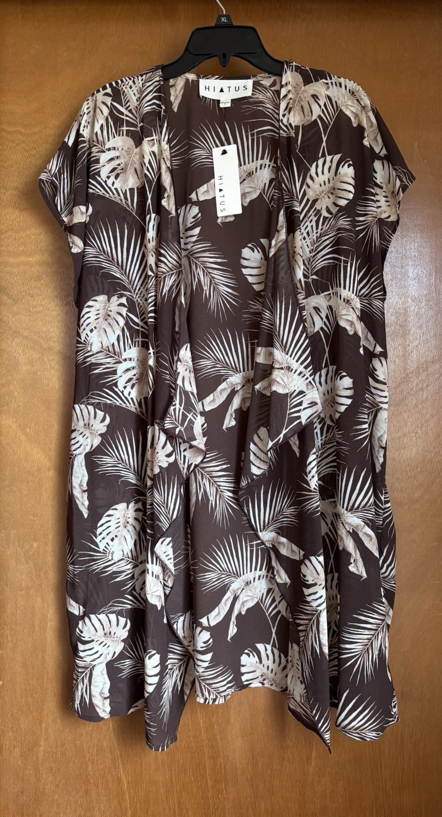 Brown Tropical Palm Print Chiffon Duster Open Kimono Cardigan XL 1X HIATUS 65