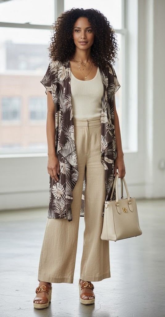 как выглядит Brown Tropical Palm Print Chiffon Duster Open Kimono Cardigan XL 1X HIATUS 65 фото