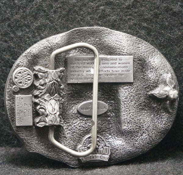 WK25131 NOS VINTAGE 1988 TELEPHONE WORKER MENS PEWTER BELT BUCKLE