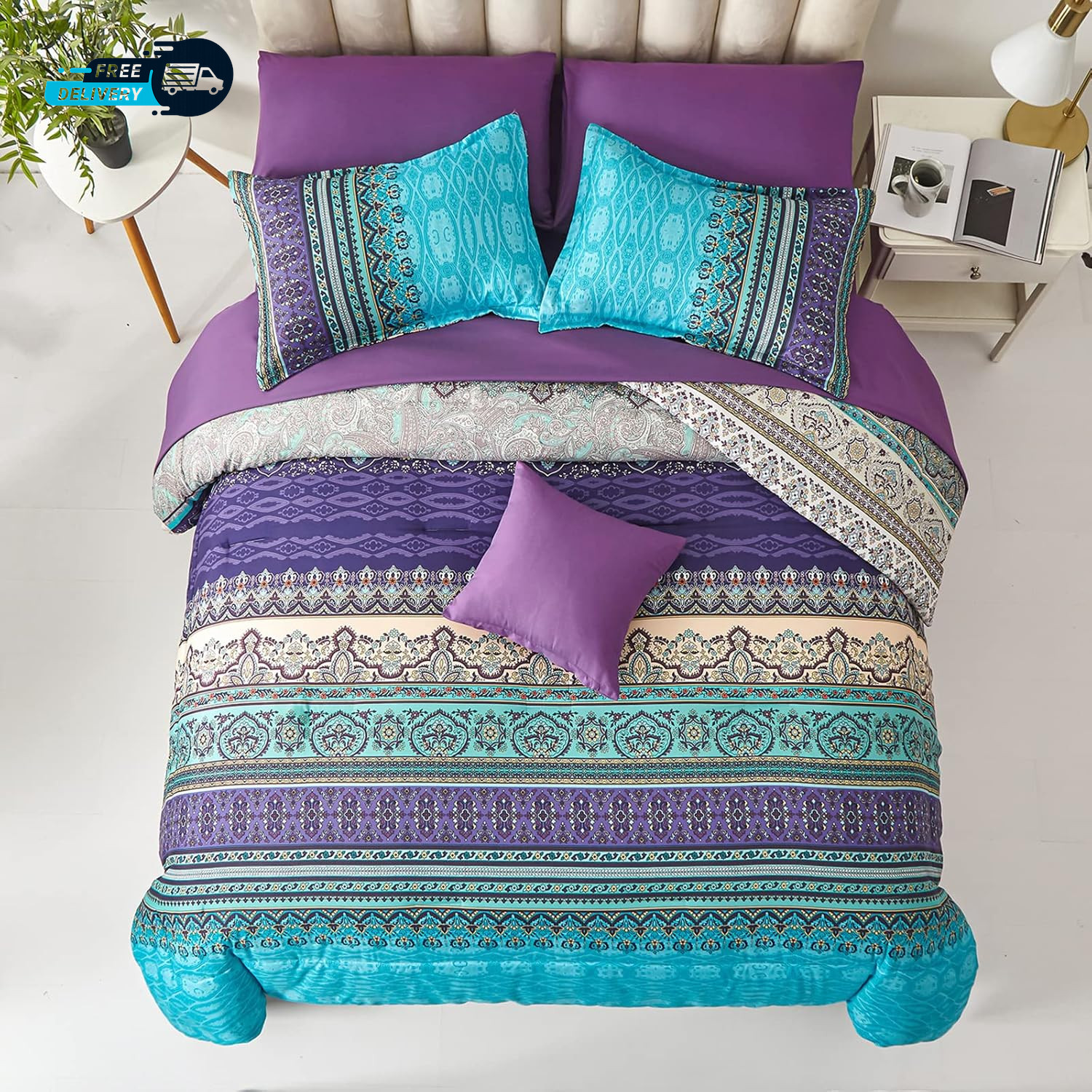 Boho Comforter Set Queen Size 8 Piece Bed in a Bag Bohemian Striped Bedding