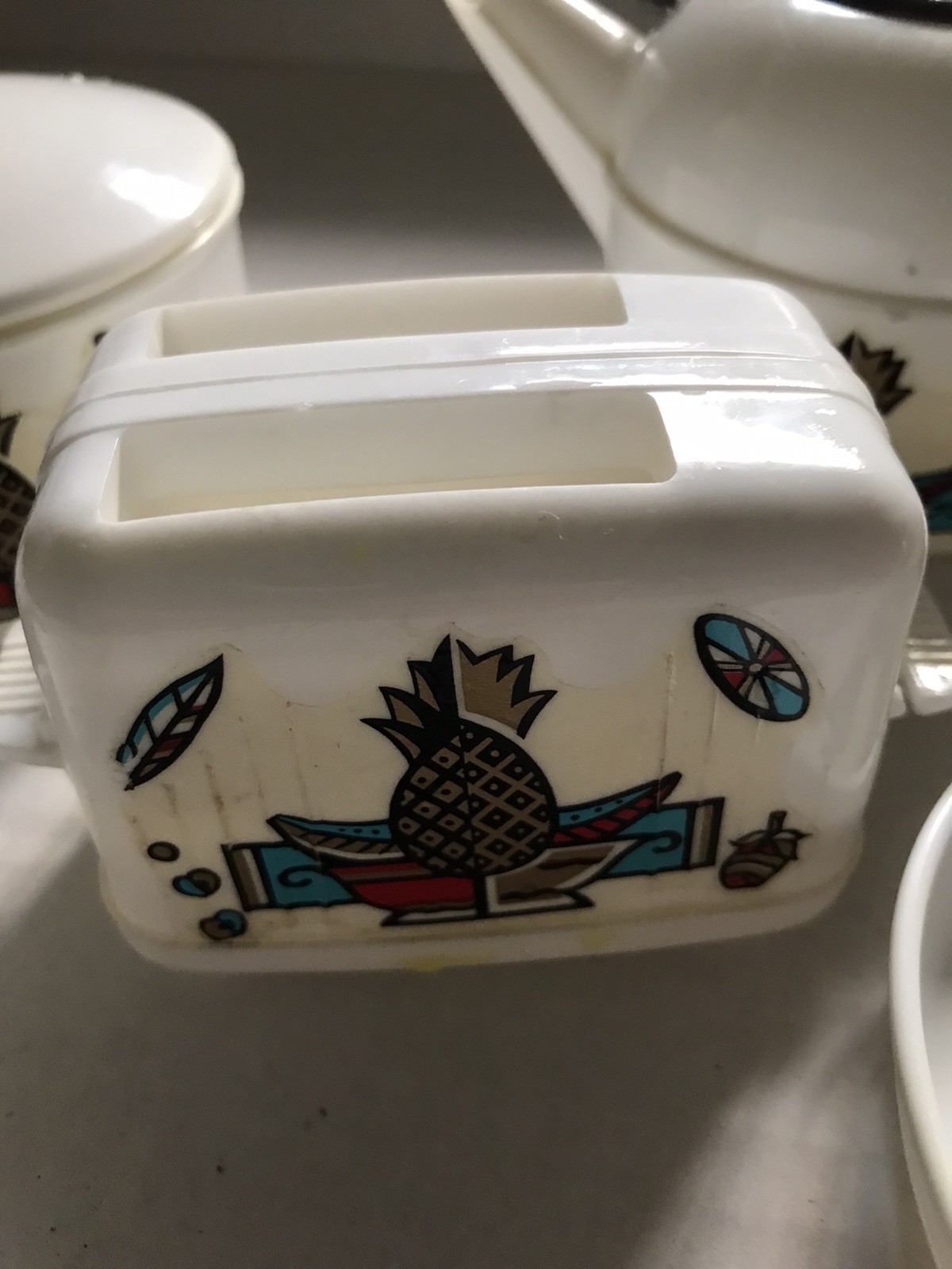 Vintage Betty Ware By Banner Plastic Kid's Dishes Pineapple Design 7 Pieces
