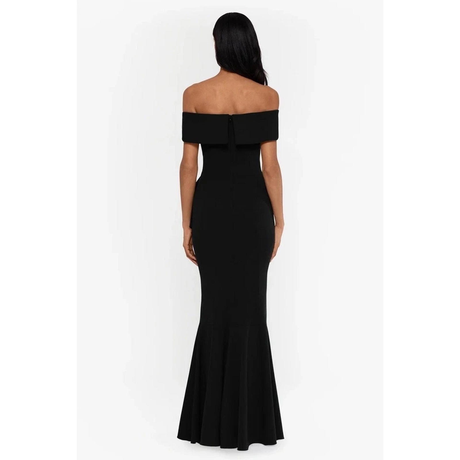 как выглядит Betsy Adam Black Off the Shoulder Crepe Ruffle Gown Size 4 Black 279 фото