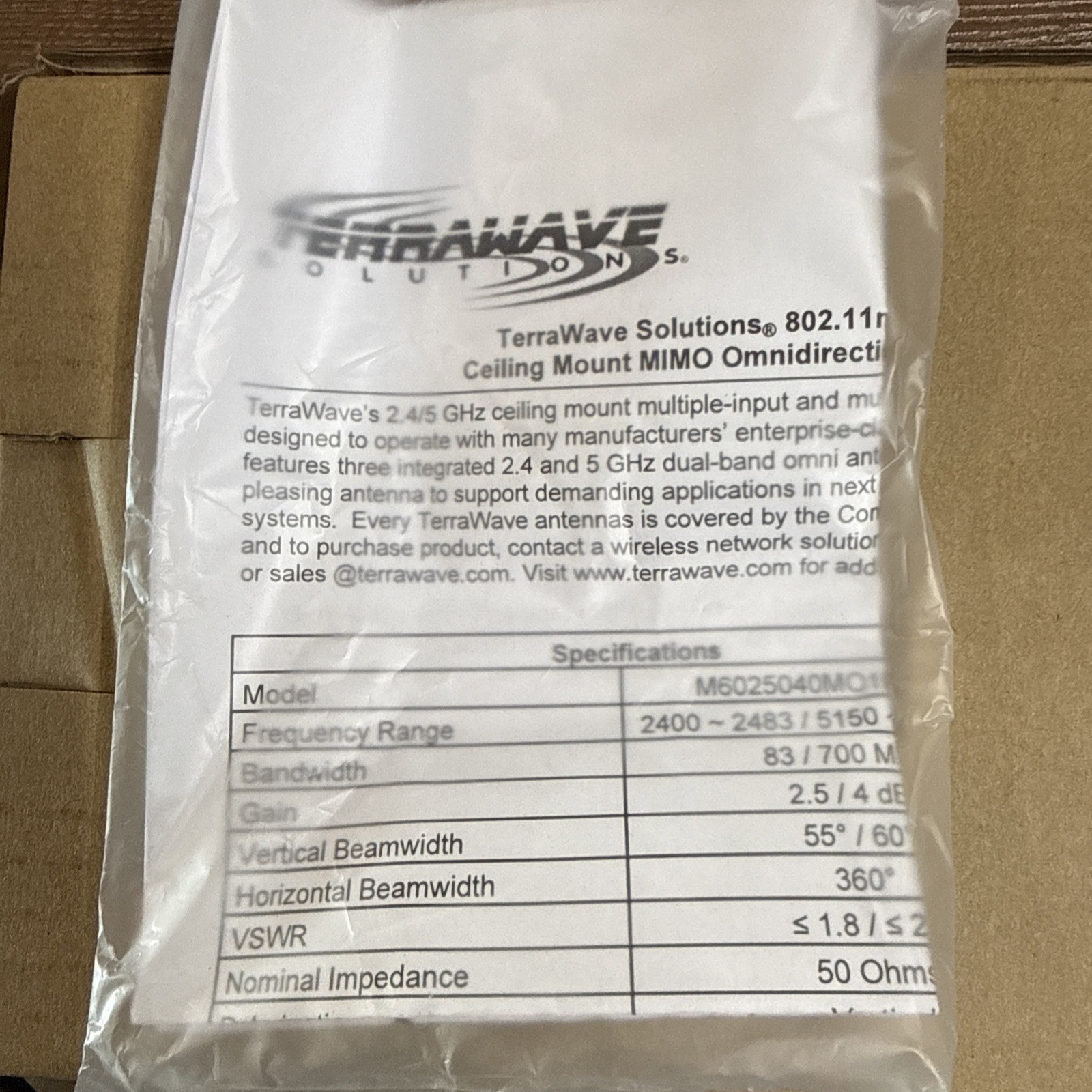 Terrawave 2.4/5 Ghz 4dBi MIMO Ceilling Omnidirectional Antenna w/ 36 RPSMA