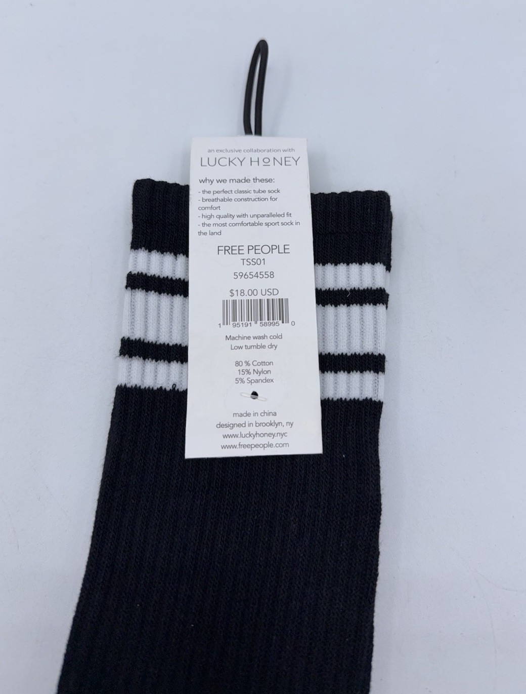NEW Free People Movement Logo Stripe Tube Socks Black FP Movement Lucky Honey
