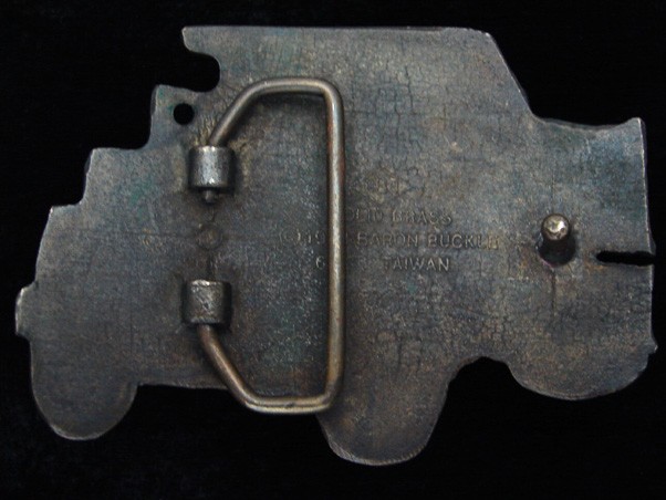 QG15120 VINTAGE 1978 CUT-OUT DUMP TRUCK HEAVY MACHINERY SOLID BRASS BUCKLE