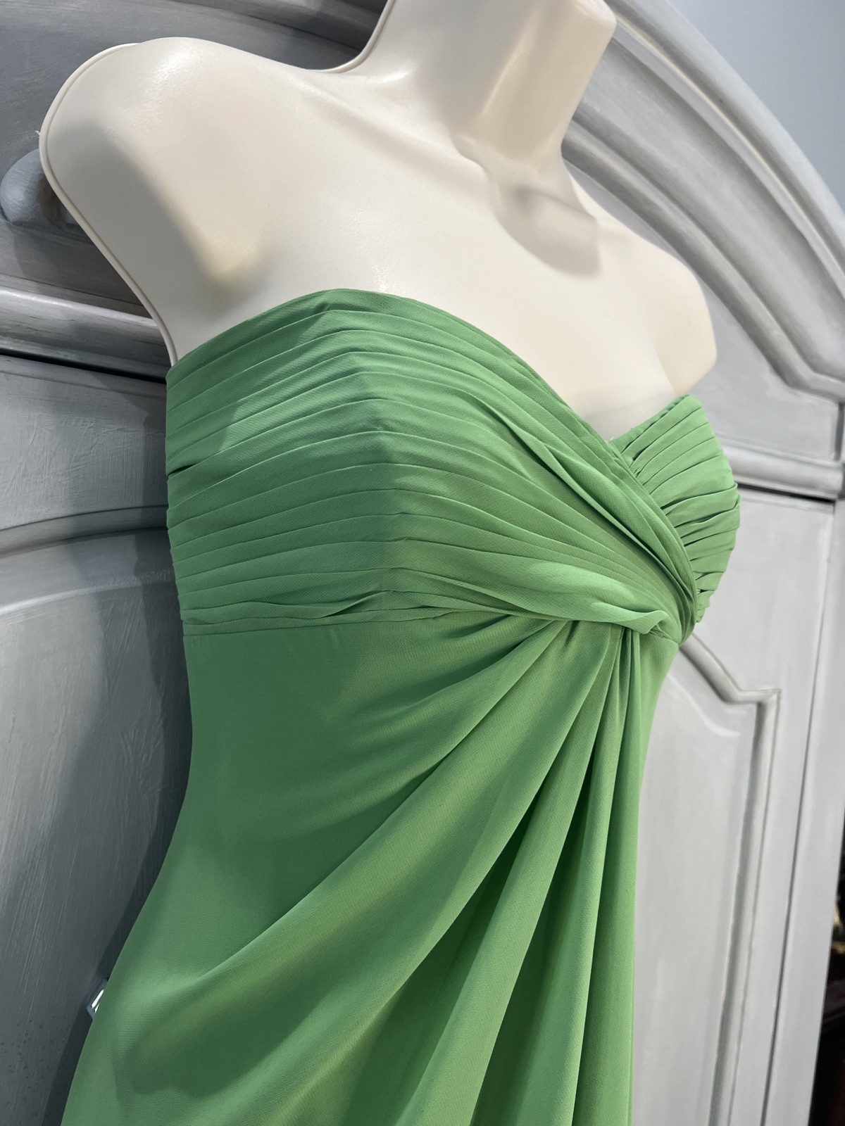 David's Bridal Green Chiffon Dress Sweetheart Neckline Size 12 F12284 Bridesmaid