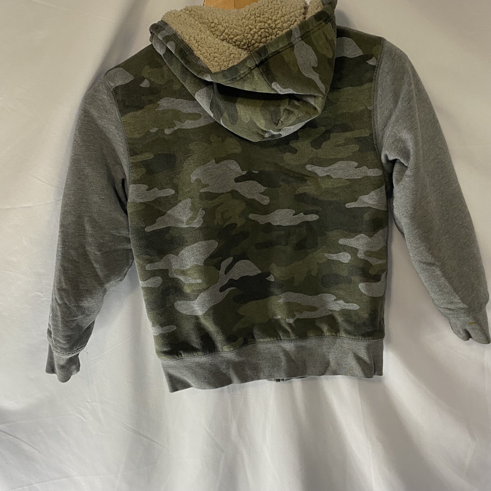 Boys CHILDRENS PLACE Sherpa Full Zip Hoodie Sweatshirt Jacket Faded Camo Med 7/8