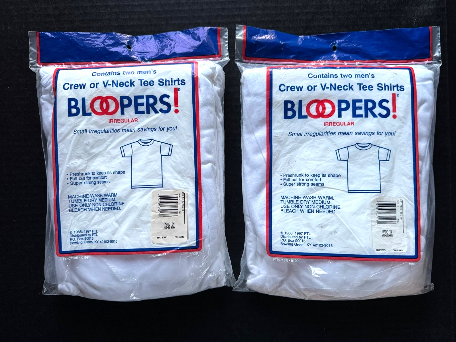 VTG 1997 Fruit of The Loom Bloopers Mens Irregular 2-Pack 4 V Neck T Shirts 2XL