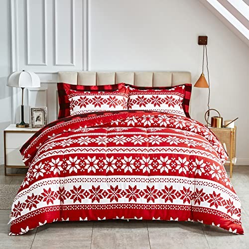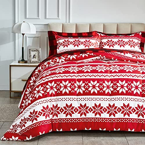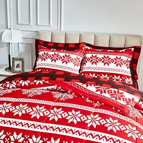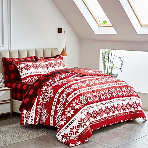 Christmas Red Queen Size Bed in a Bag 7 Pieces Queen-7 pieces Snowflake
