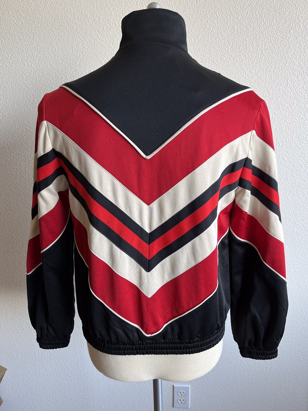 как выглядит GUCCI Men Cotton-Blend Chevron Black Red Pattern Bomber Zipper Front Jackets S фото