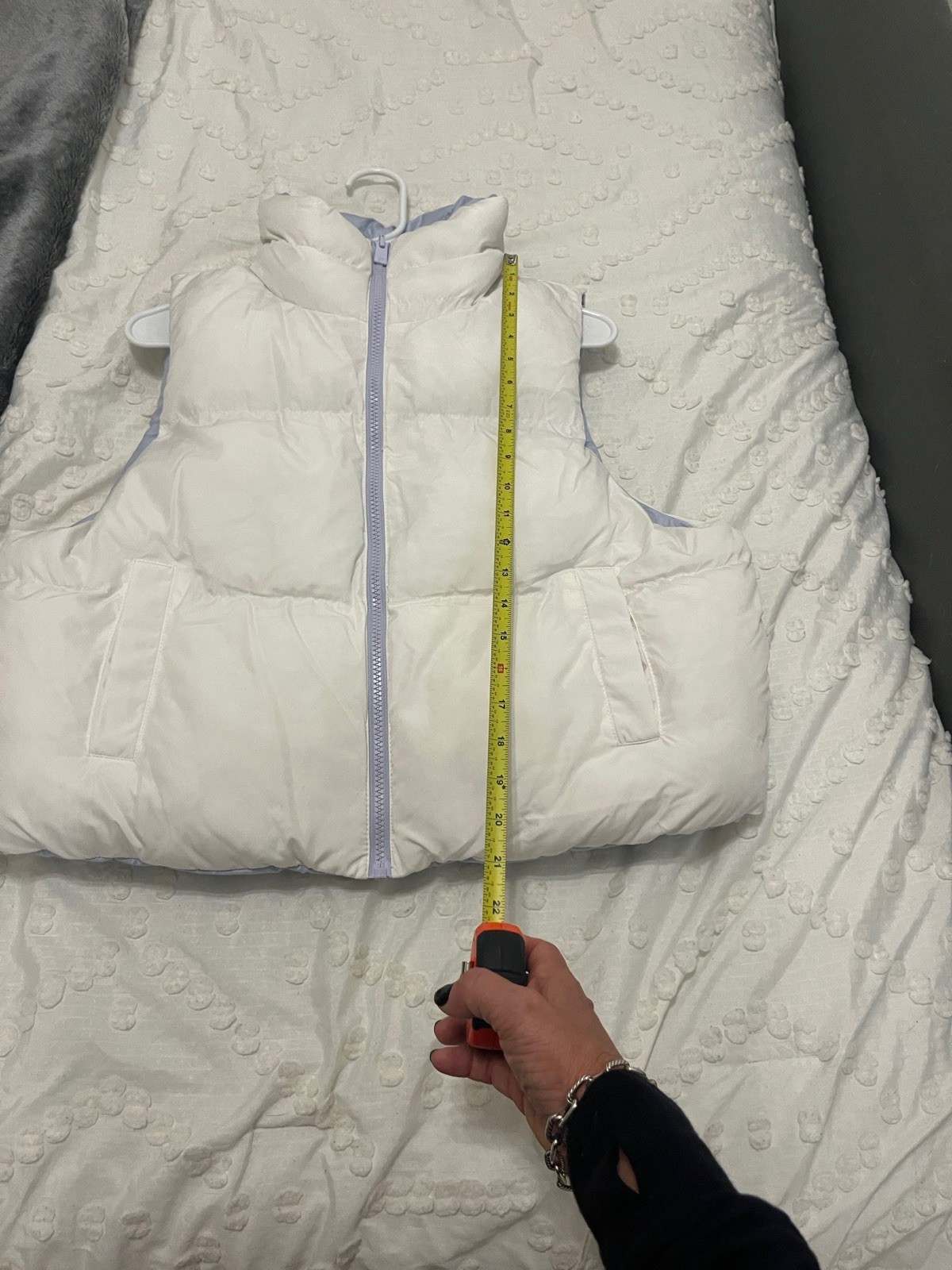 как выглядит All In Motion Reversible White and Light Blue Womens Puffer Vest Size Medium фото