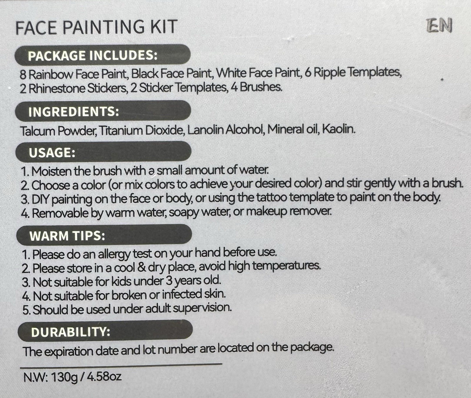 как выглядит Janolia Water Activated Face Body Paint Kit, 10 Colors, Brushes More NIB фото