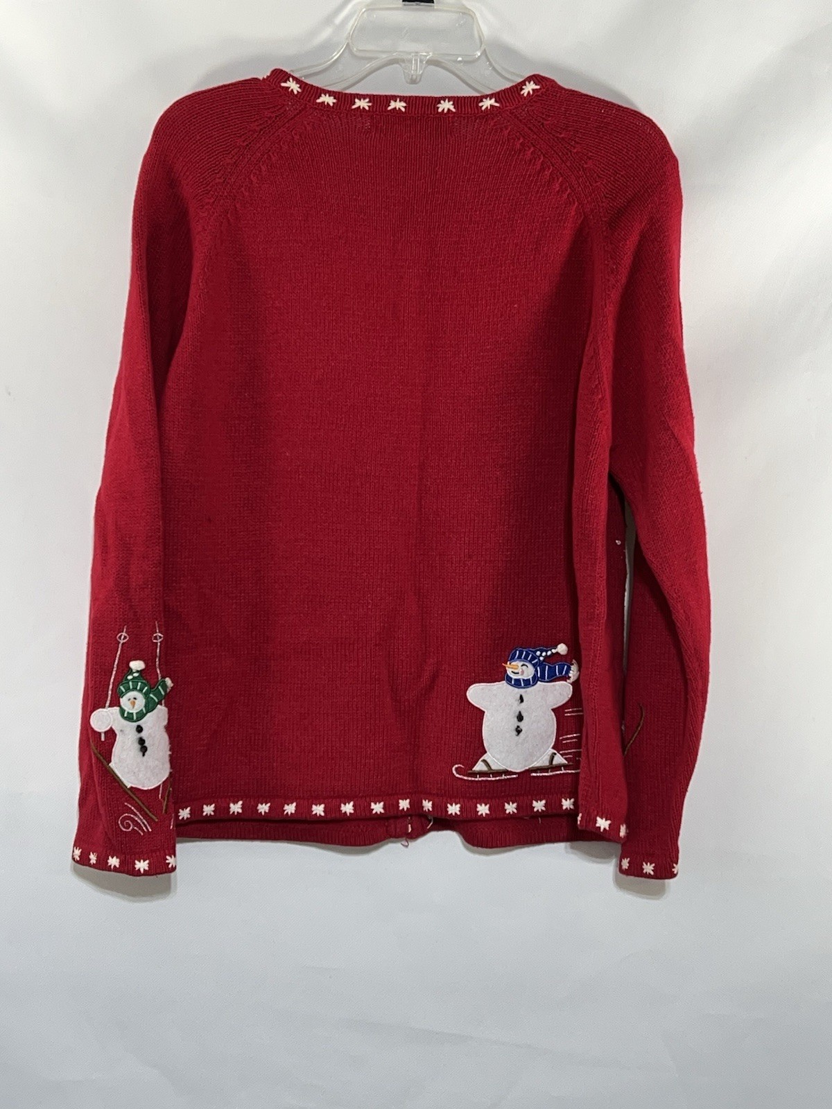 Heirloom Collectibles Vintage 90s Christmas Snowman Zip Cardigan Sweater M Stain