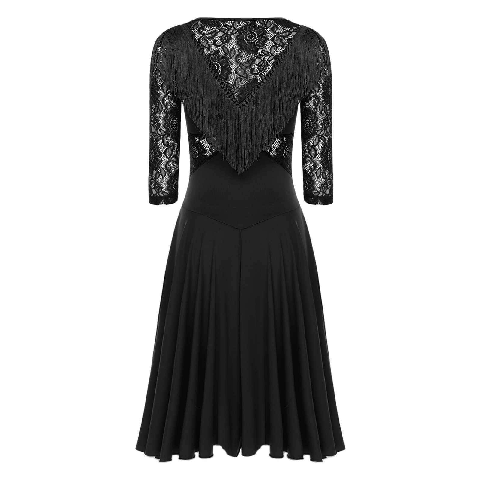 как выглядит Womens Dancewear Ballet Costume 3/4 Sleeve Dress Knitwear Shorts Tassel Lace фото