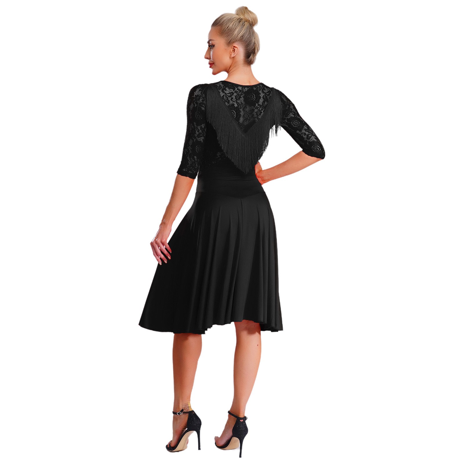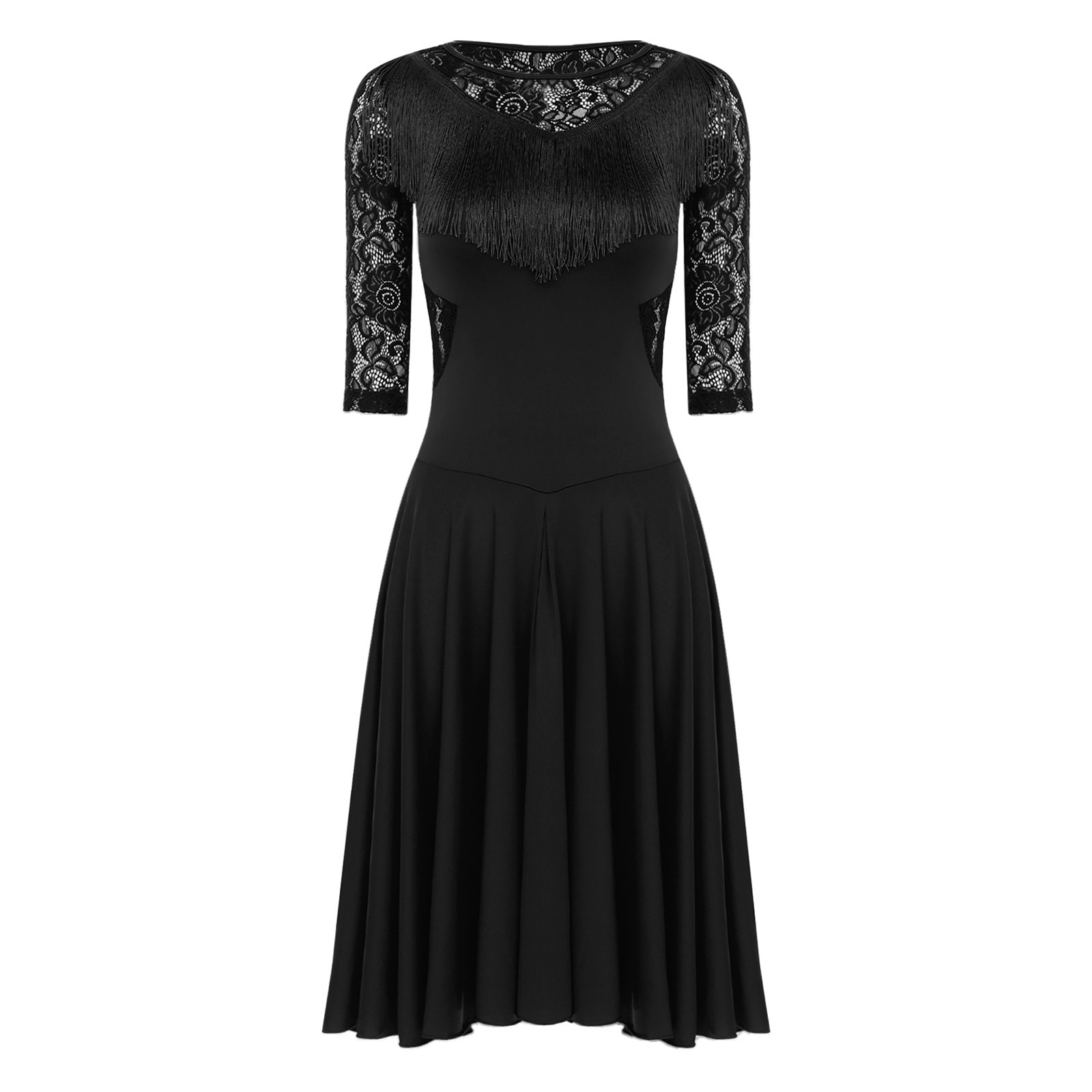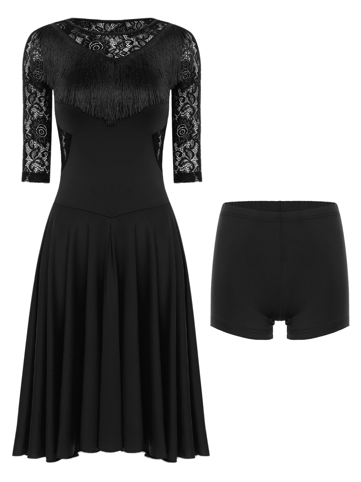 Womens Dancewear Ballet Costume 3/4 Sleeve Dress Knitwear Shorts Tassel Lace