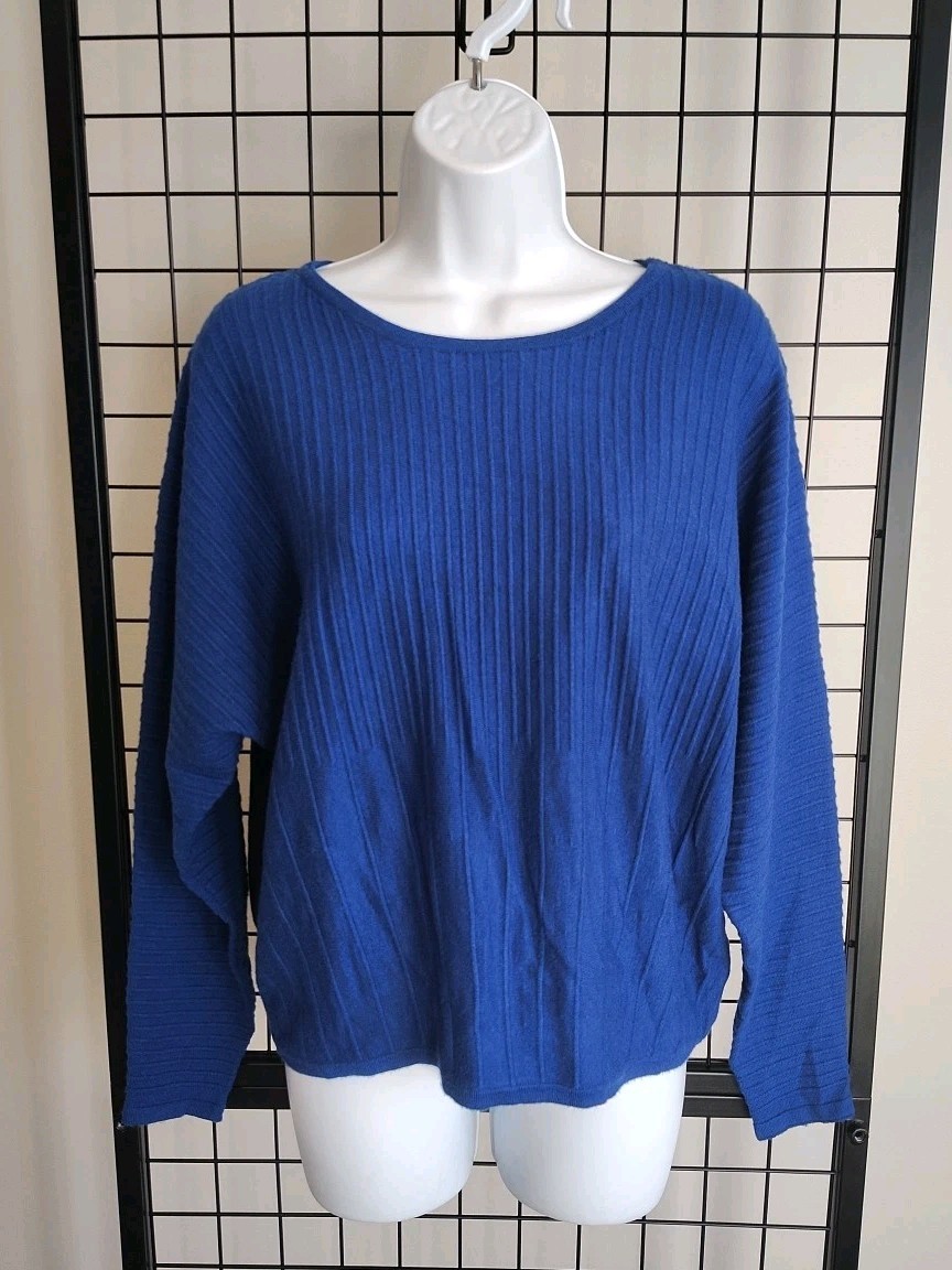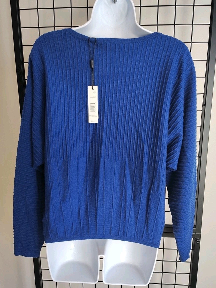 как выглядит Tahari Womans Viscose Blend Sweater Medium Long Sleeve Ribbed Blue Pullover Top фото