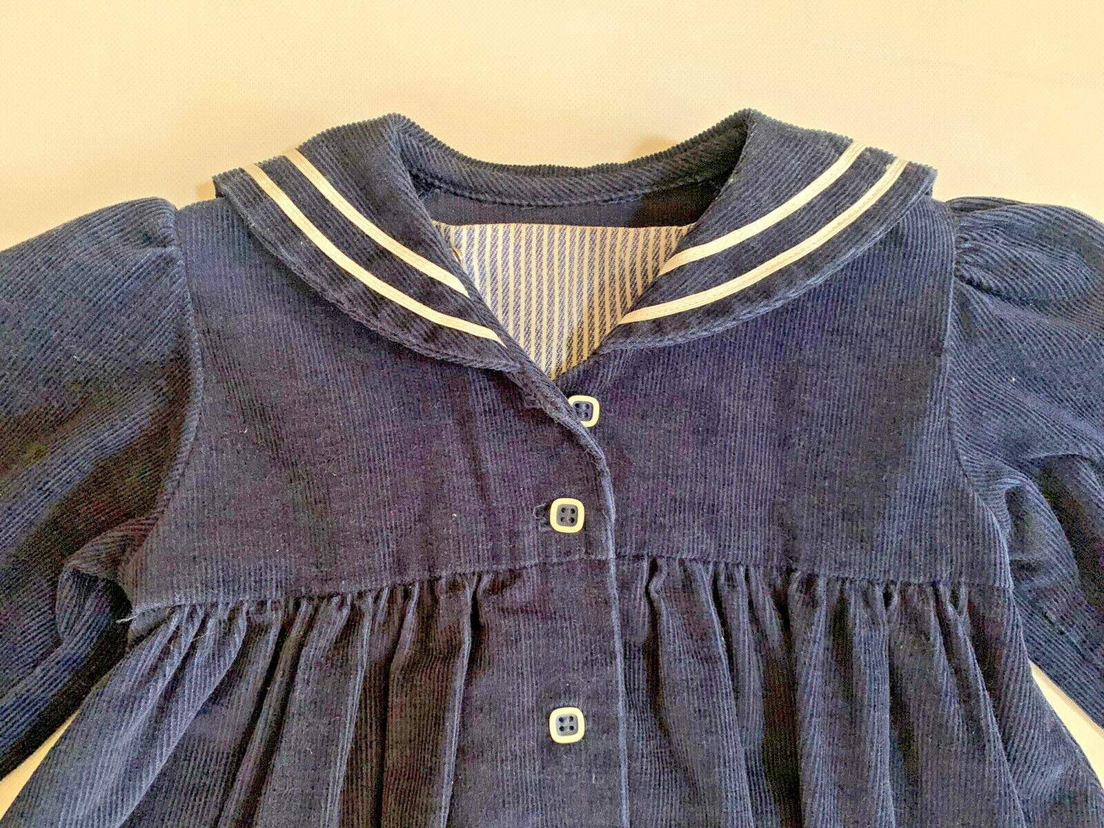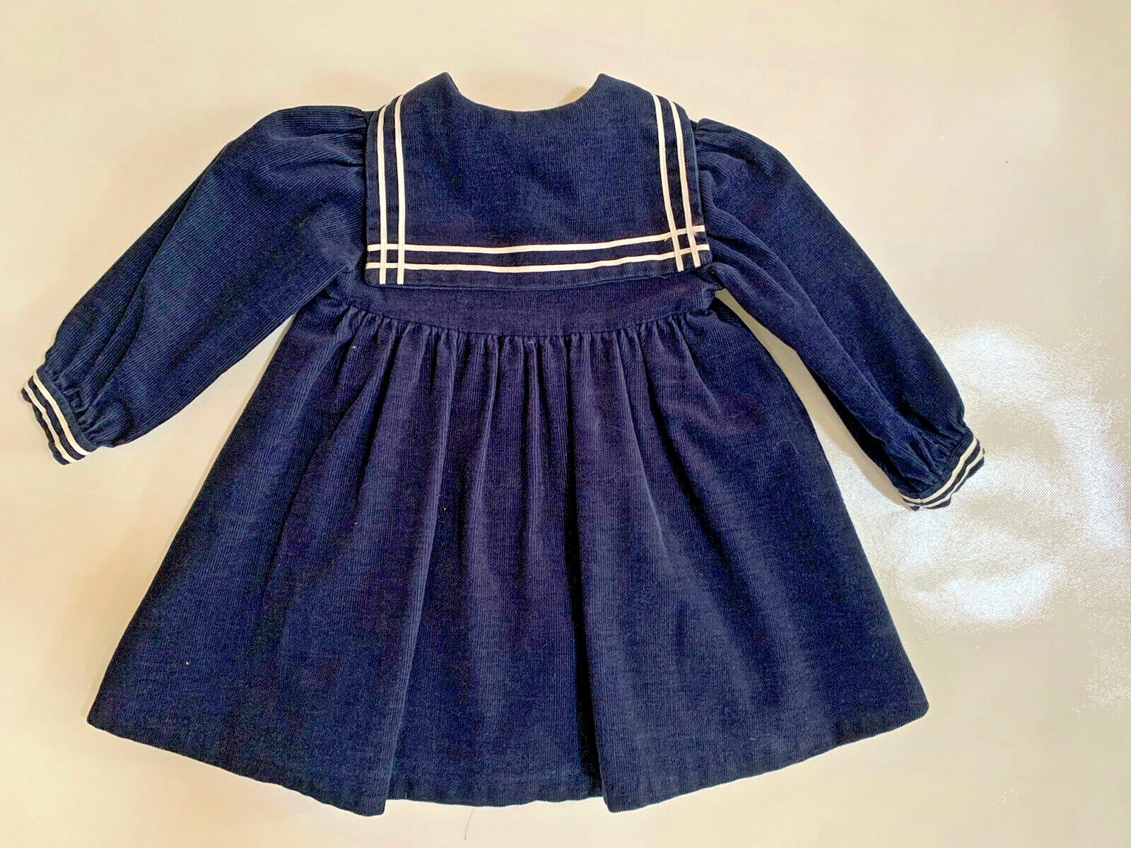 Handmade Toddler Girls Navy Blue White Corduroy Sailor Dress Size 3/4