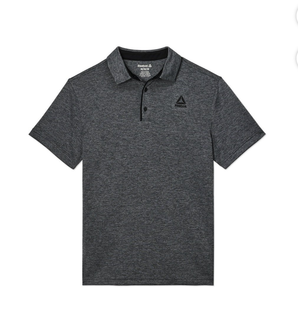 REEBOK Men s Size M Performance Polo Shirt Short Sleeve Wicking Ebony Heather