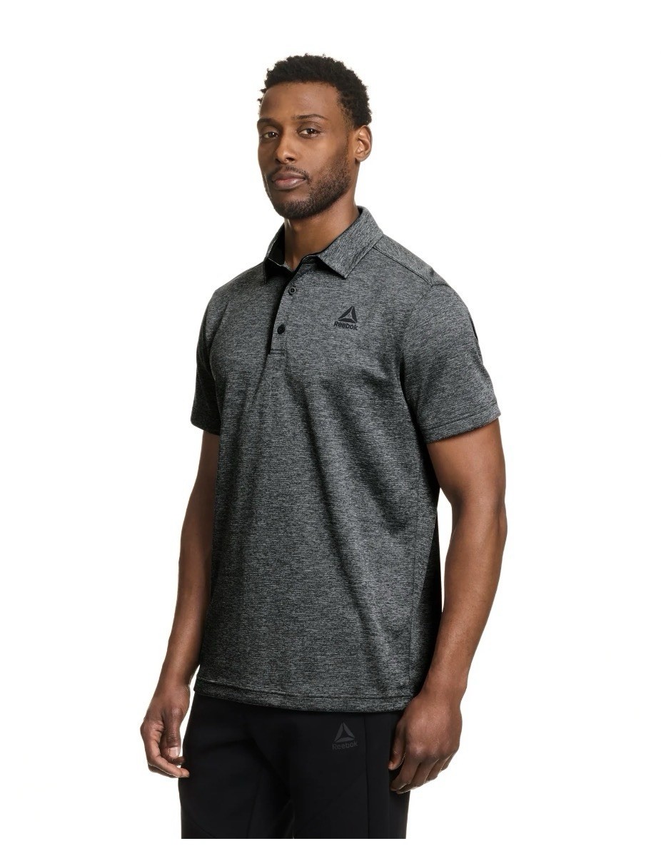 как выглядит REEBOK Men s Size M Performance Polo Shirt Short Sleeve Wicking  Ebony Heather фото