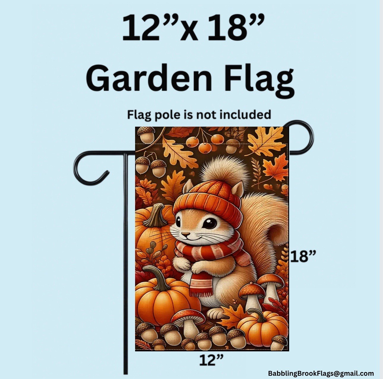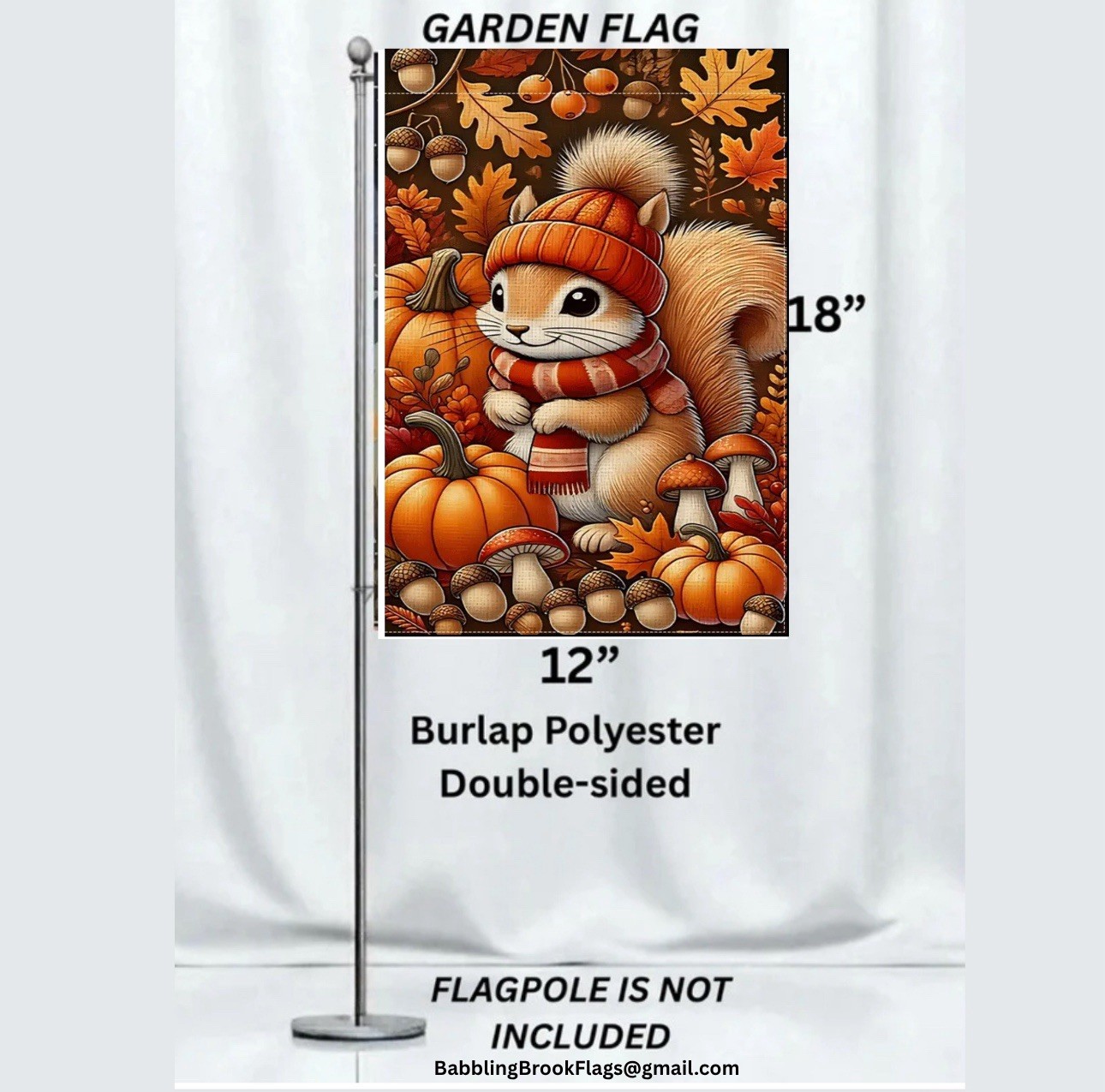 Garden Flag,12 x18 , Autumn squirrel Pumpkins, thick burlap double-sided