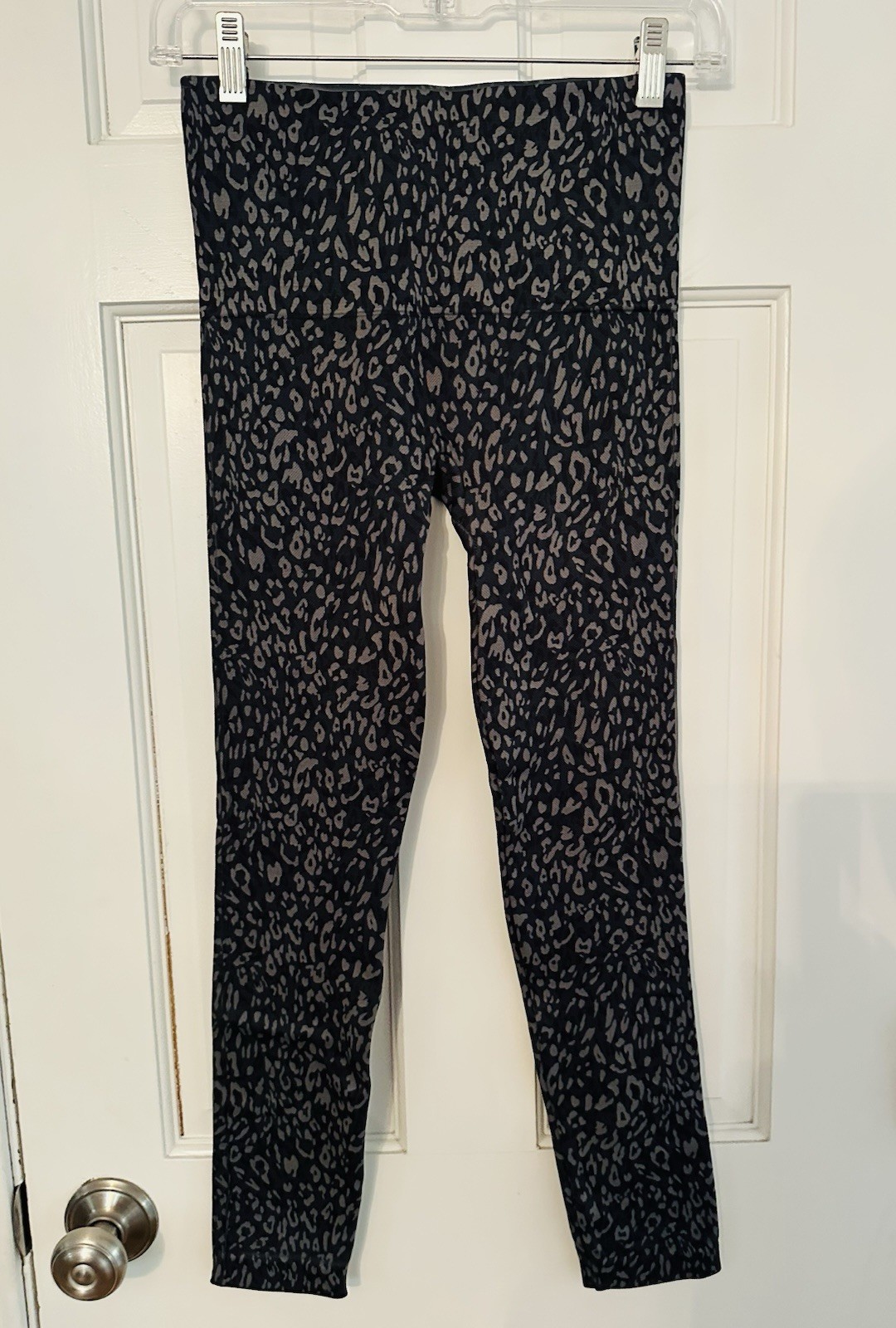 как выглядит SPANX Black and Gray Animal Print Leggings Size M фото