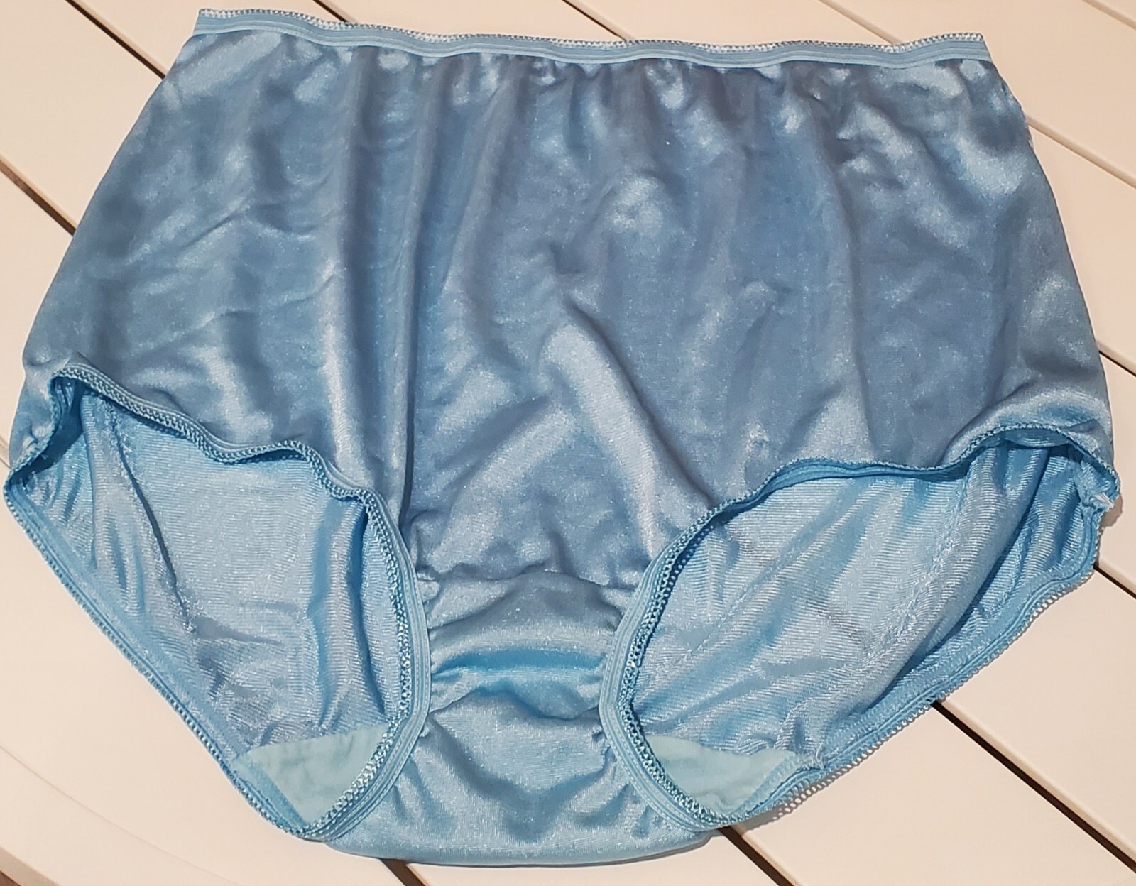 VTG Style Shiny Nylon Panty Full Cut Brief 8/XL Frost BLUE Underscore