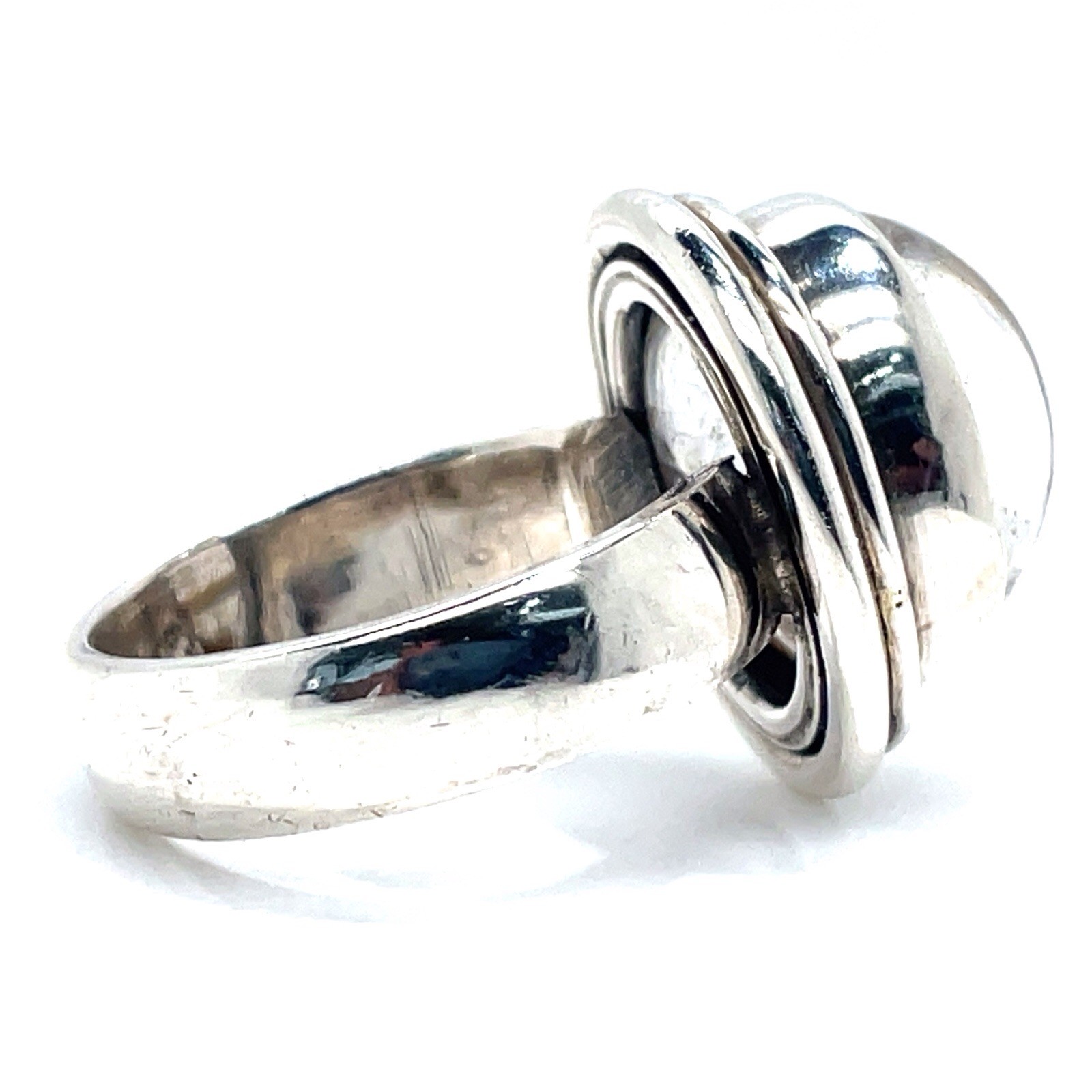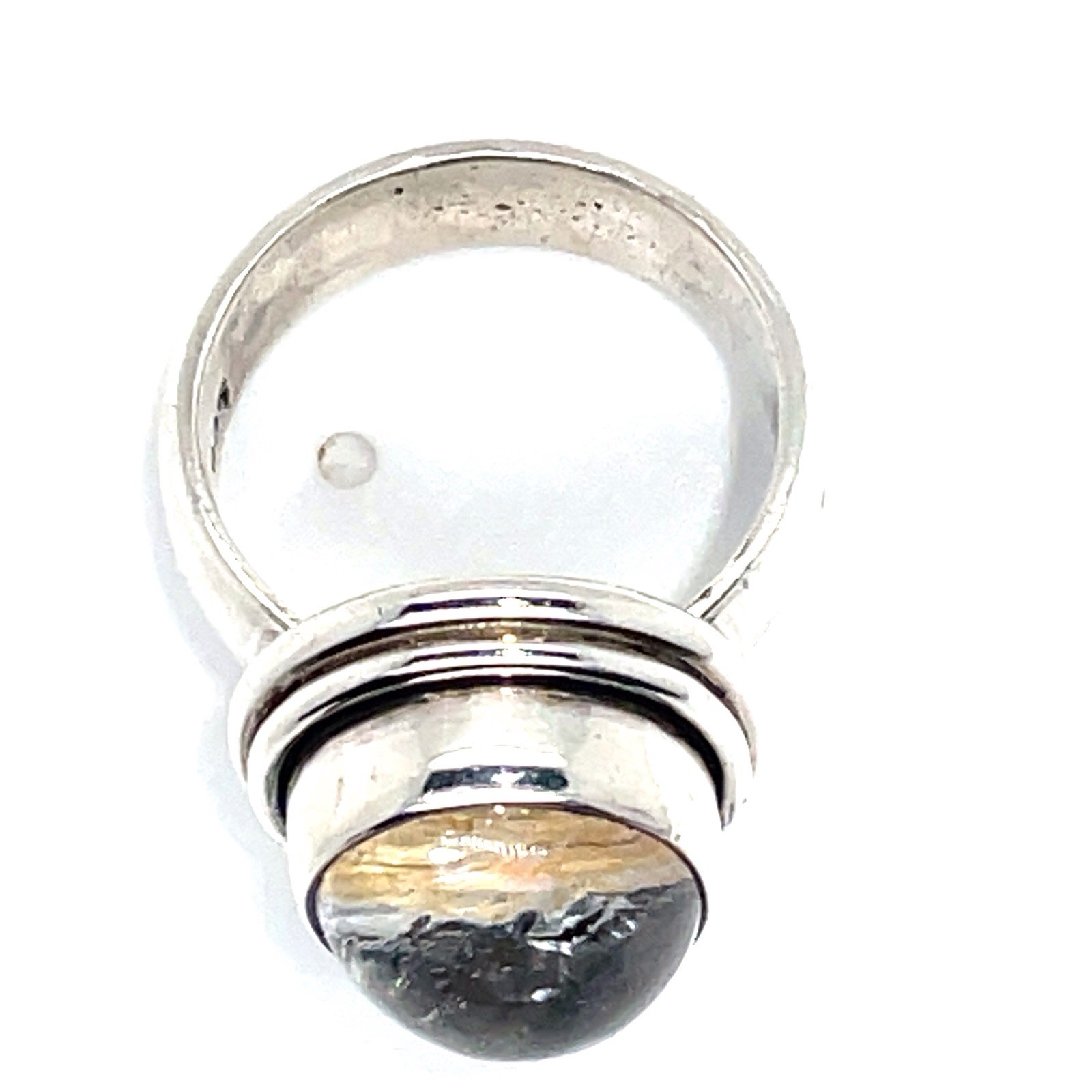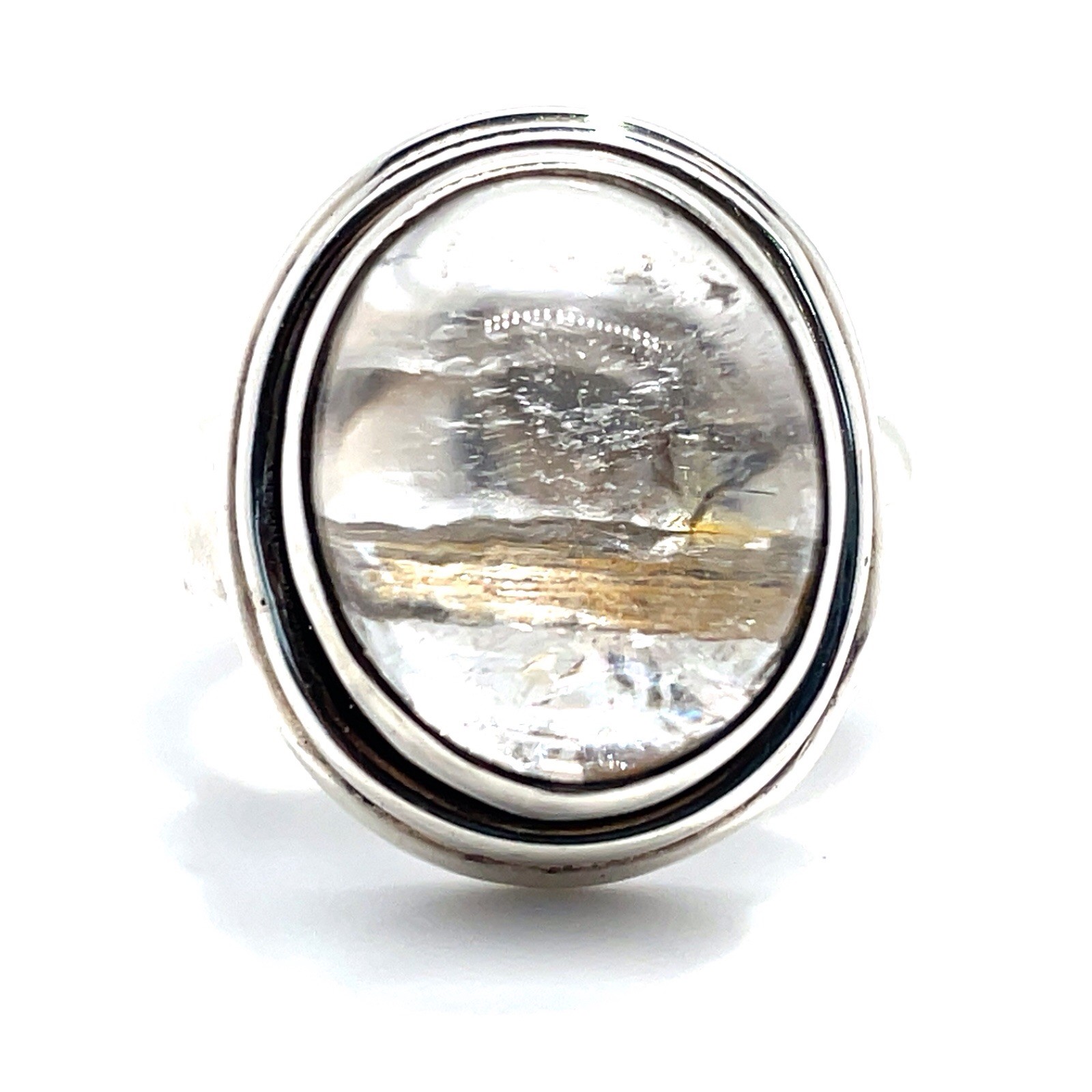 925 Sterling Silver Oval Rutilated Quartz Cabochon Ring Size 8-3/4 - 12.2 Grams