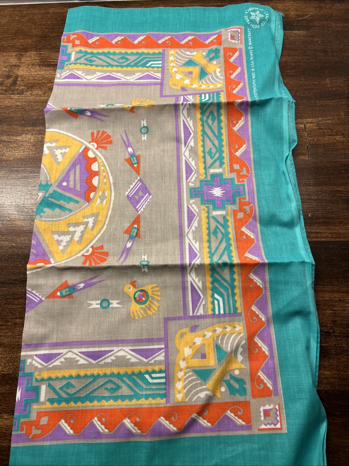 как выглядит 2 VINTAGE 90s BANDANAS Aztec Southwestern Western Made In USA Wamcraft фото