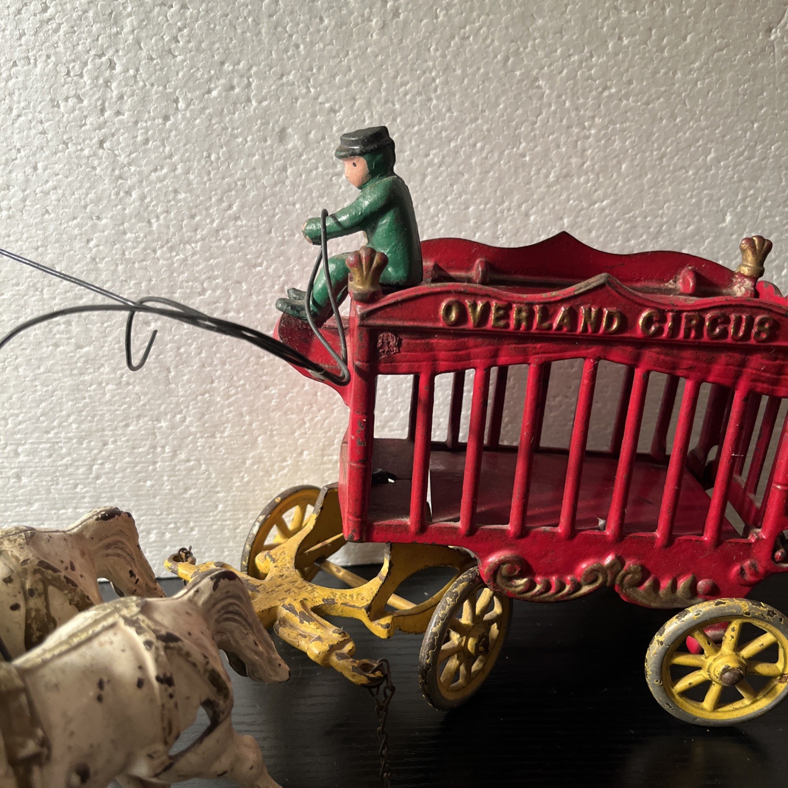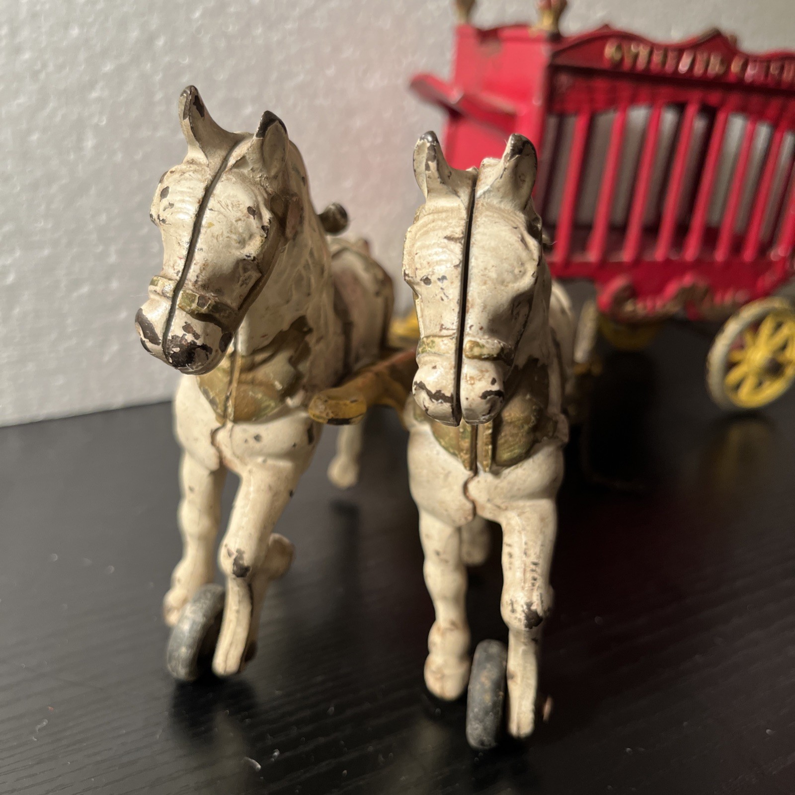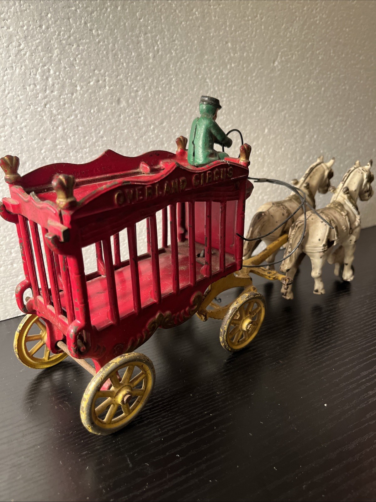 KENTON ANTIQUE CAST IRON OVERLAND CIRCUS HORSE DRAWN WAGON CAGE. NO POLAR BEAR